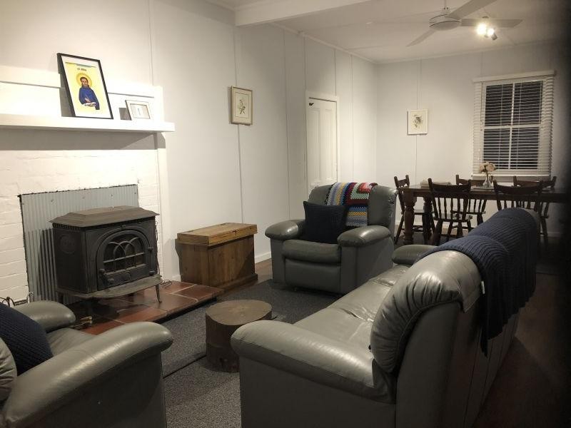 The house consists of 3 large bedrooms that open onto the large front verandah & a large open lounge dining room with a beautiful combustion fireplace that warms the whole house on those cool winter nights.