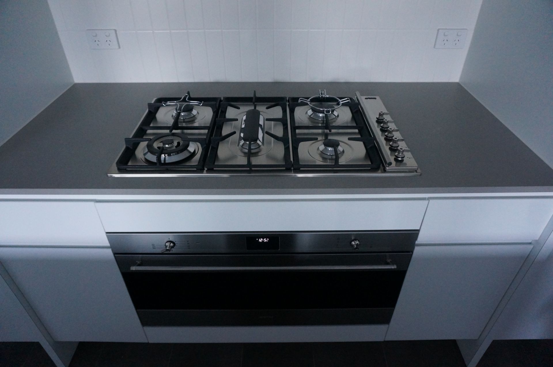 * Light filled hostess kitchen featuring stone benchtops, island bench with power, 900mm s/s Smeg appliances, seamless no handle soft-close cabinetry, an abundance of storage space & much more