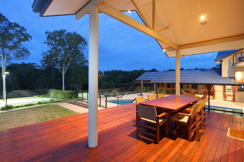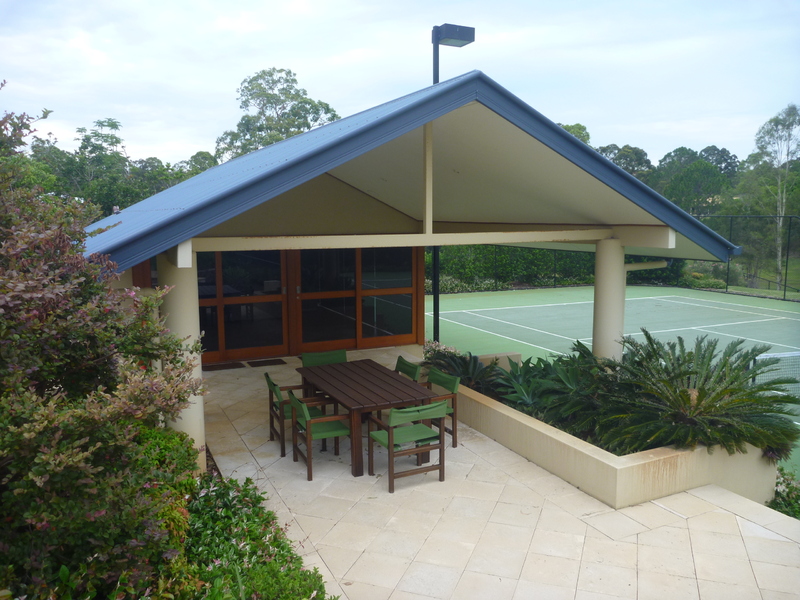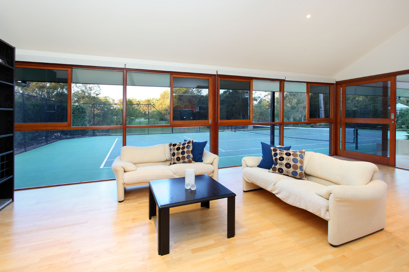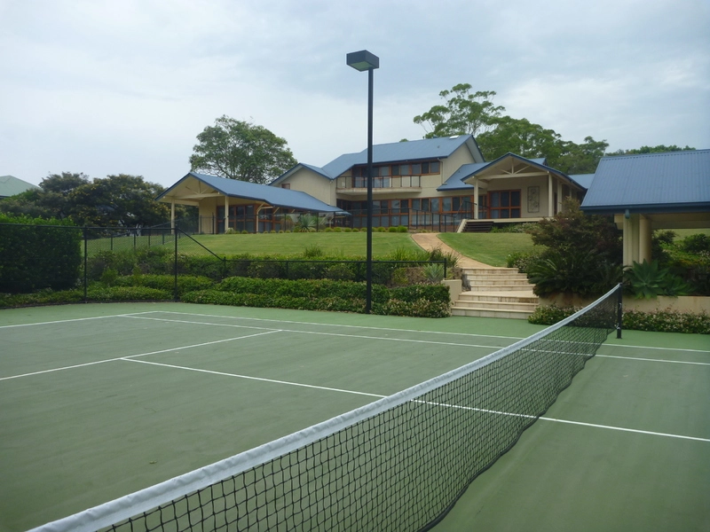 The grounds feature a full size flood lit tennis court. The tennis court is designed with minimal fencing and removable net posts to allow it to convert into a giant entertainment area. The tennis house with undercover seating and BBQ area has its own kitchen and WC. It is the ideal spot for entertaining. The lower area of the property features a waterway as well as a dam and shaded areas for seating to watch the birds and wildlife. The extensive landscaping on the whole property is watered automatically by water pumped from the dam.