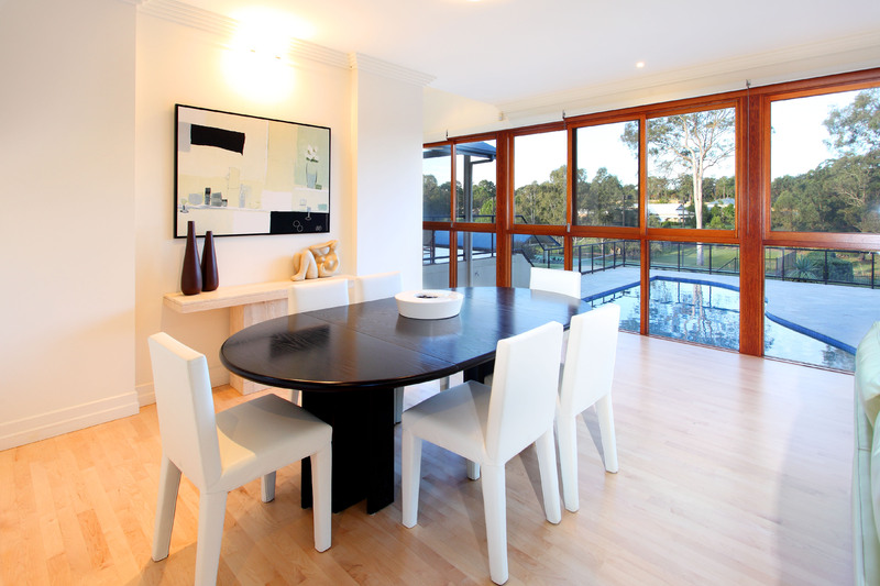 As you walk through the front doors to this a spacious modern residence, you will begin to appreciate the features of this architecturally designed split-level home. The solid maple timber floors combined with the magnificent timber joinery on all doors and windows give such a feeling of warmth. The open plan allows the many windows to fill every room with natural light. The large formal lounge, dining and kitchen area enhance the sense of space. All the main rooms of the home overlook the uniquely designed sparkling swimming pool. The open plan kitchen features granite bench tops, two-pac finishes on cabinets and all European Appliances (Miele). The adjacent informal dining area flows seamlessly to the large covered timber deck overlooking the picturesque grounds. There is an office, as well as storage room and a fully functional and well-sized laundry. The guest area is on separate level with its own separate WC and bathroom. The upstairs master suite is spacious and private featuring a superb WIR, a roomy and elegant ensuite and its own private balcony. This master suite can be a luxurious retreat or a perfect parent getaway.