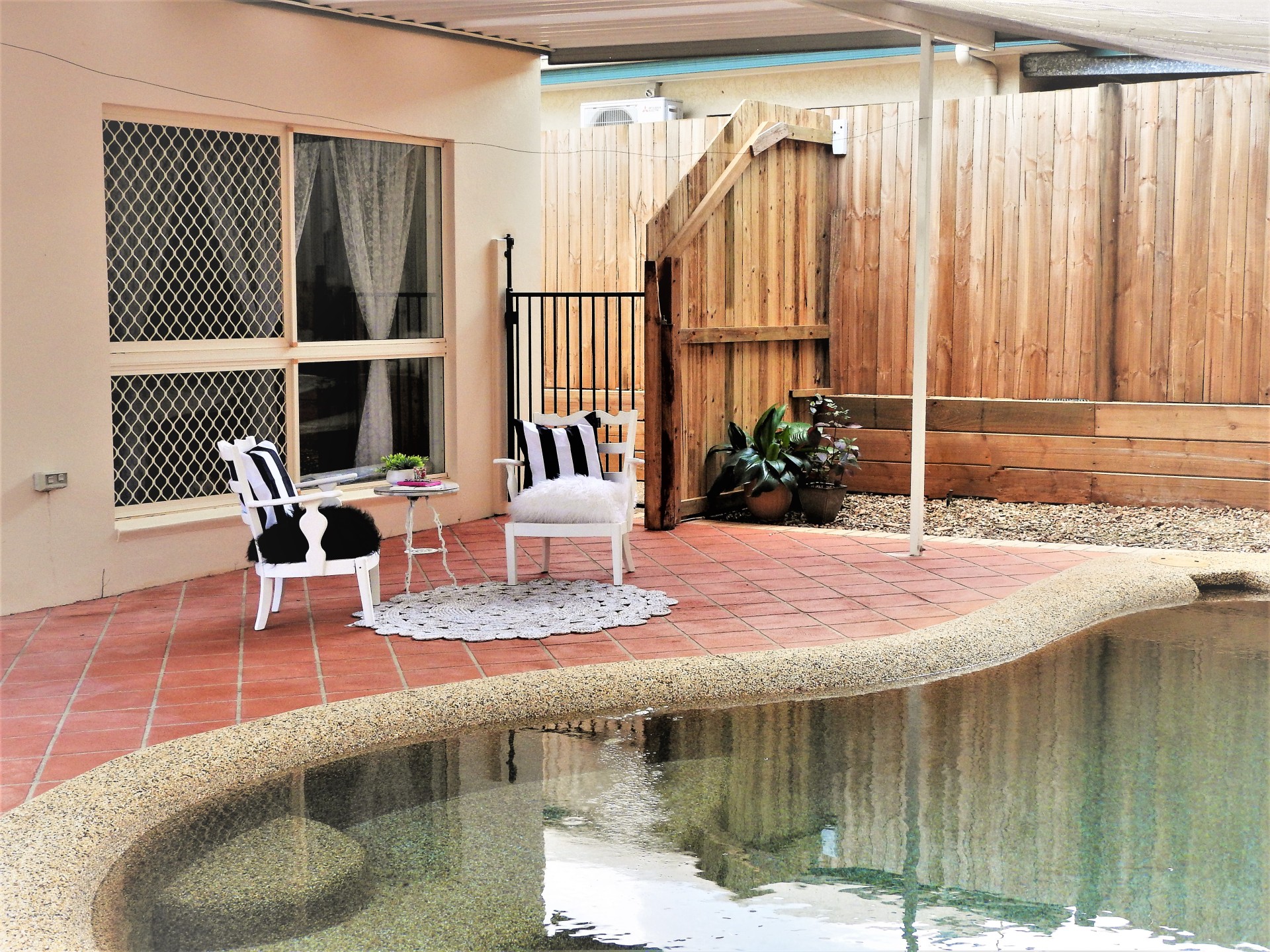 There is a large in-ground pool to cool off in the summer with a large covered courtyard for entertaining guests with an Aussie BBQ.