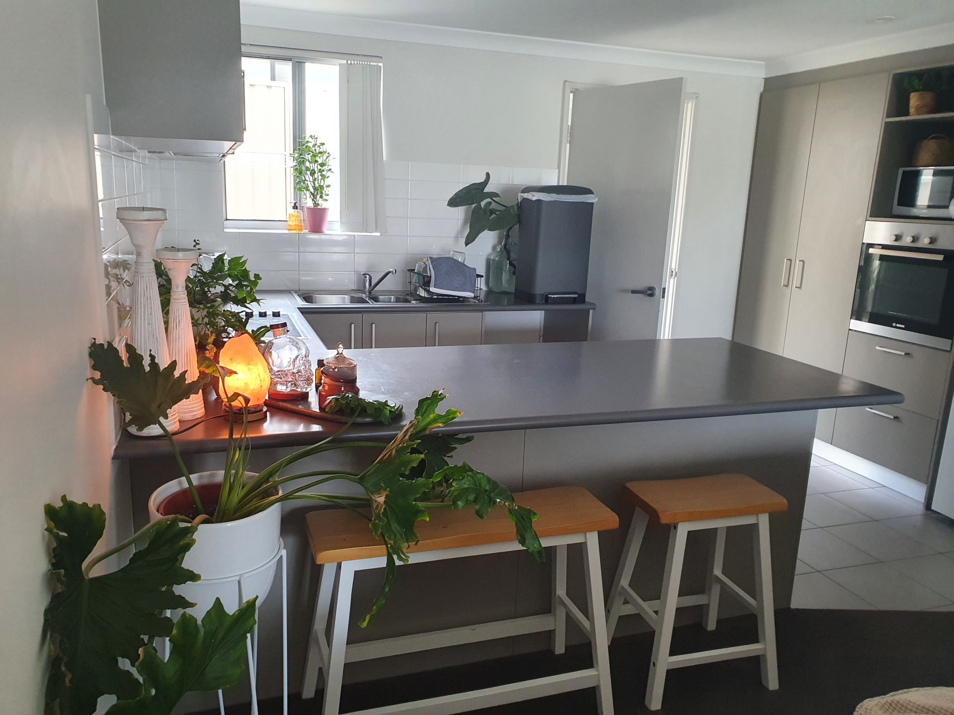 • Modern kitchen with Bosch electric oven and electric cooktop, large pantry, dishwasher recess and plenty of cupboard space