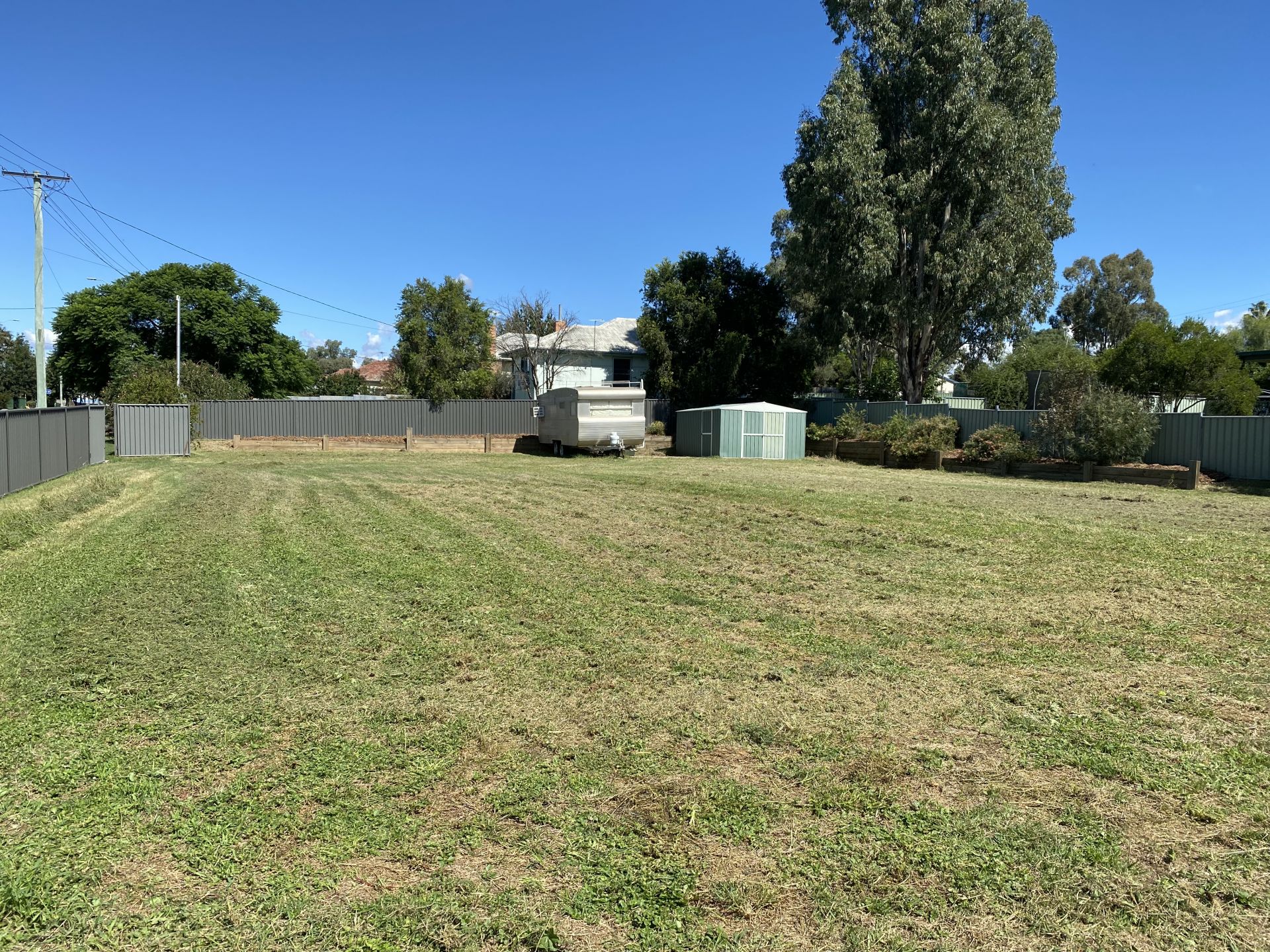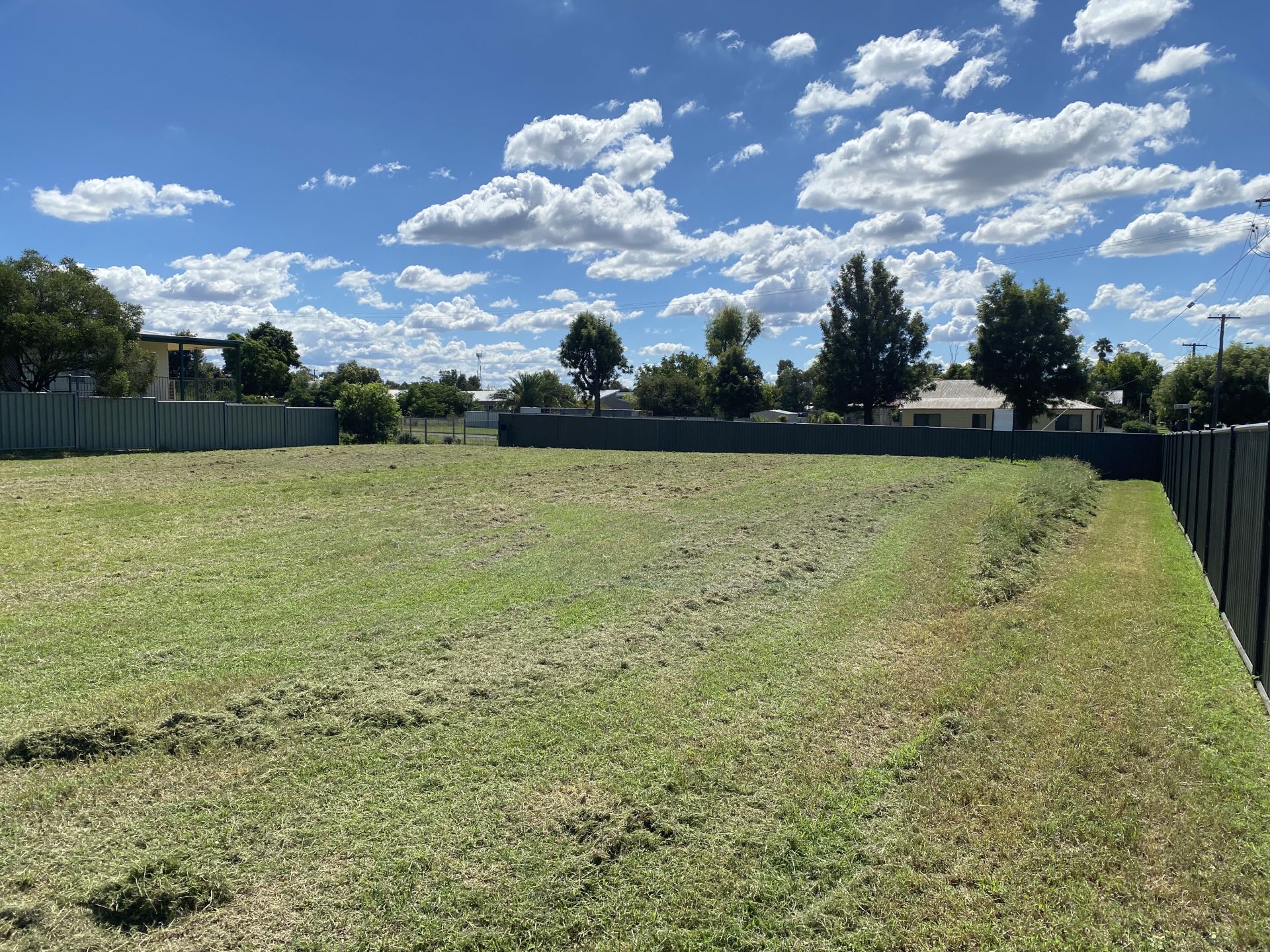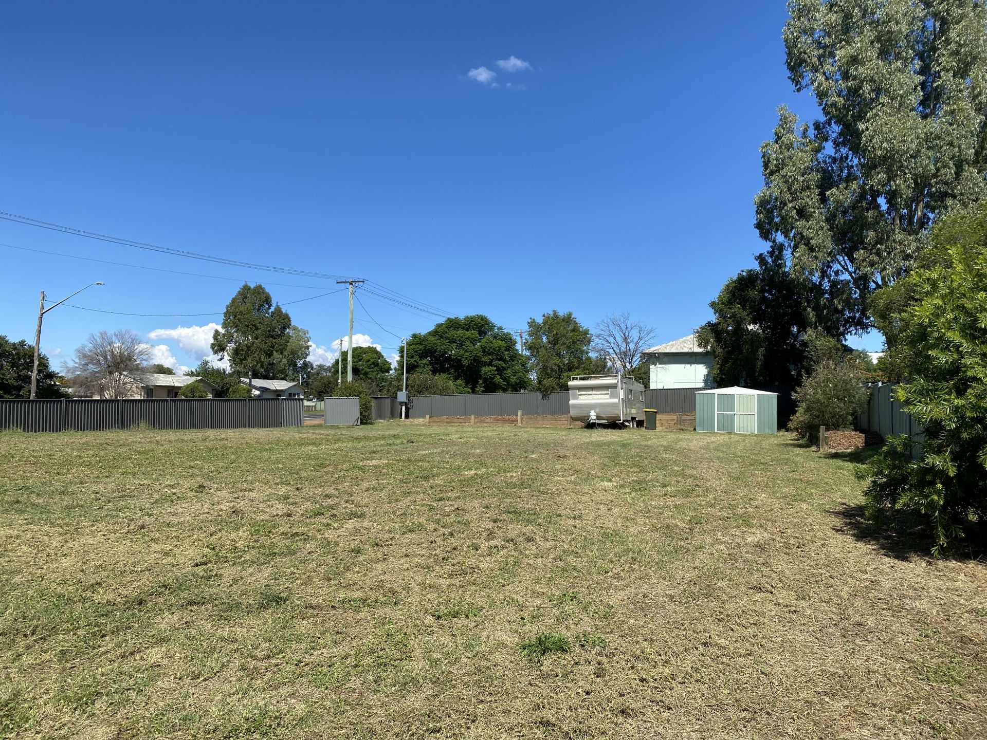 Fully fenced level block with power, sewer and water.