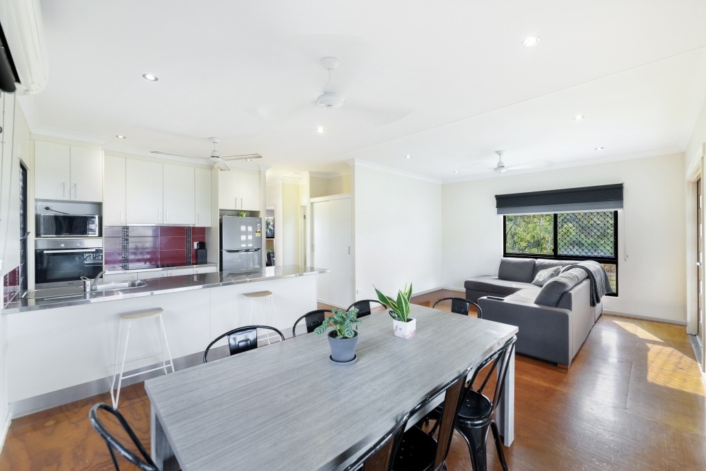 The dining area looks out to the balcony, which has been perfectly positioned to capture the lovely Darwin sunsets.