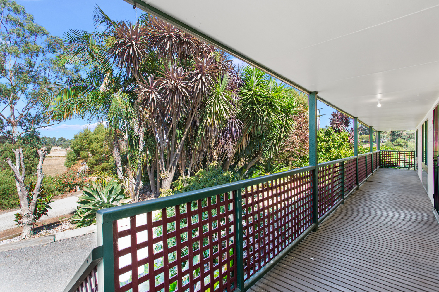 Freshly painted inside, new carpet with three good sized bedrooms with BIR, plus two large living areas with a lovely cathedral timber ceiling, & a split system air conditioner/heater. A quality kitchen with plenty of cupboards and bench space. The bathroom has a full-size bath plus a separate shower with incredible water pressure, the separate toilet and laundry are of good size with lots of storage area and are in good solid condition. The stunning verandah runs the full length of the home and is perfect for sitting on and overlooking the garden and listening to the local wild life.