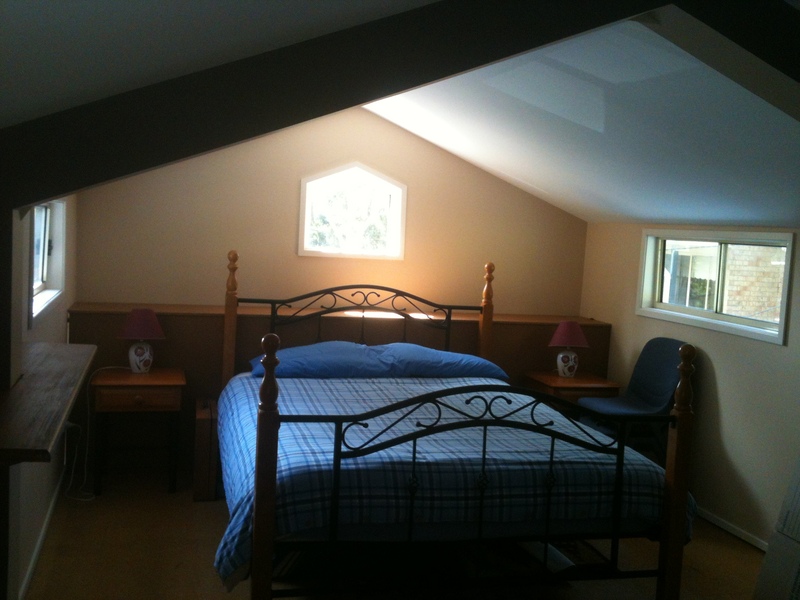 Solid timber spotted gum flooring throughout with raked ceiling to main bedroom, kitchen and living areas.