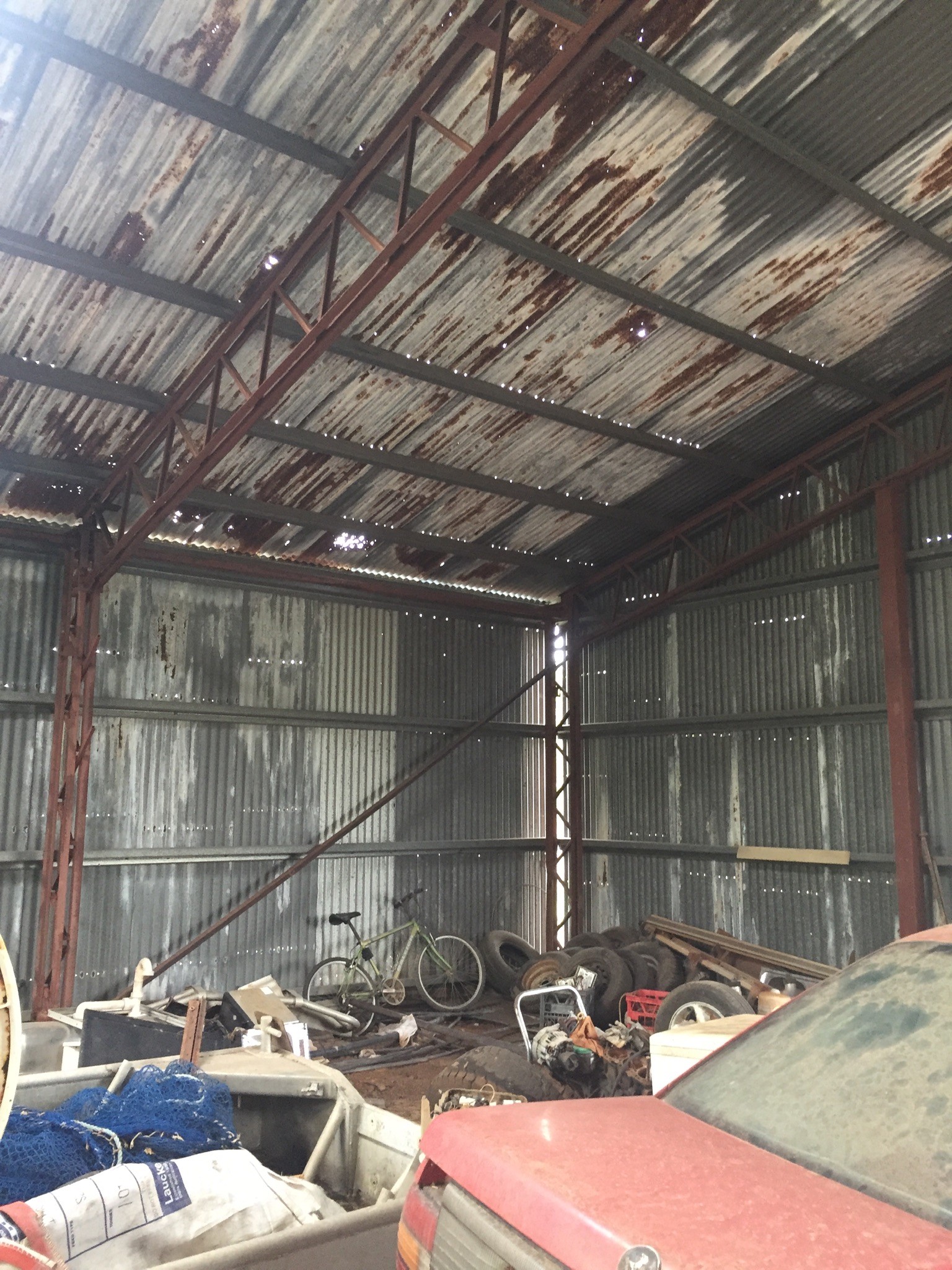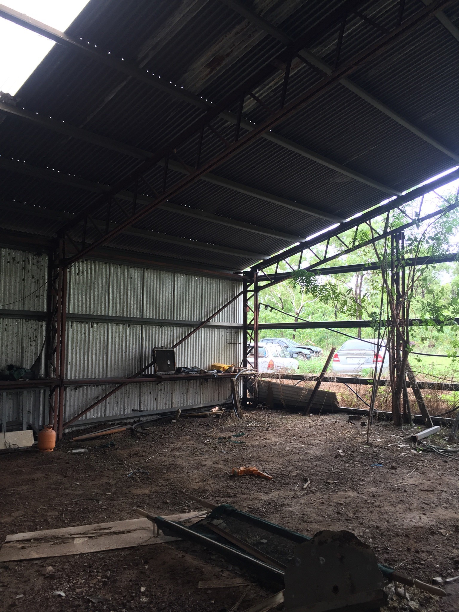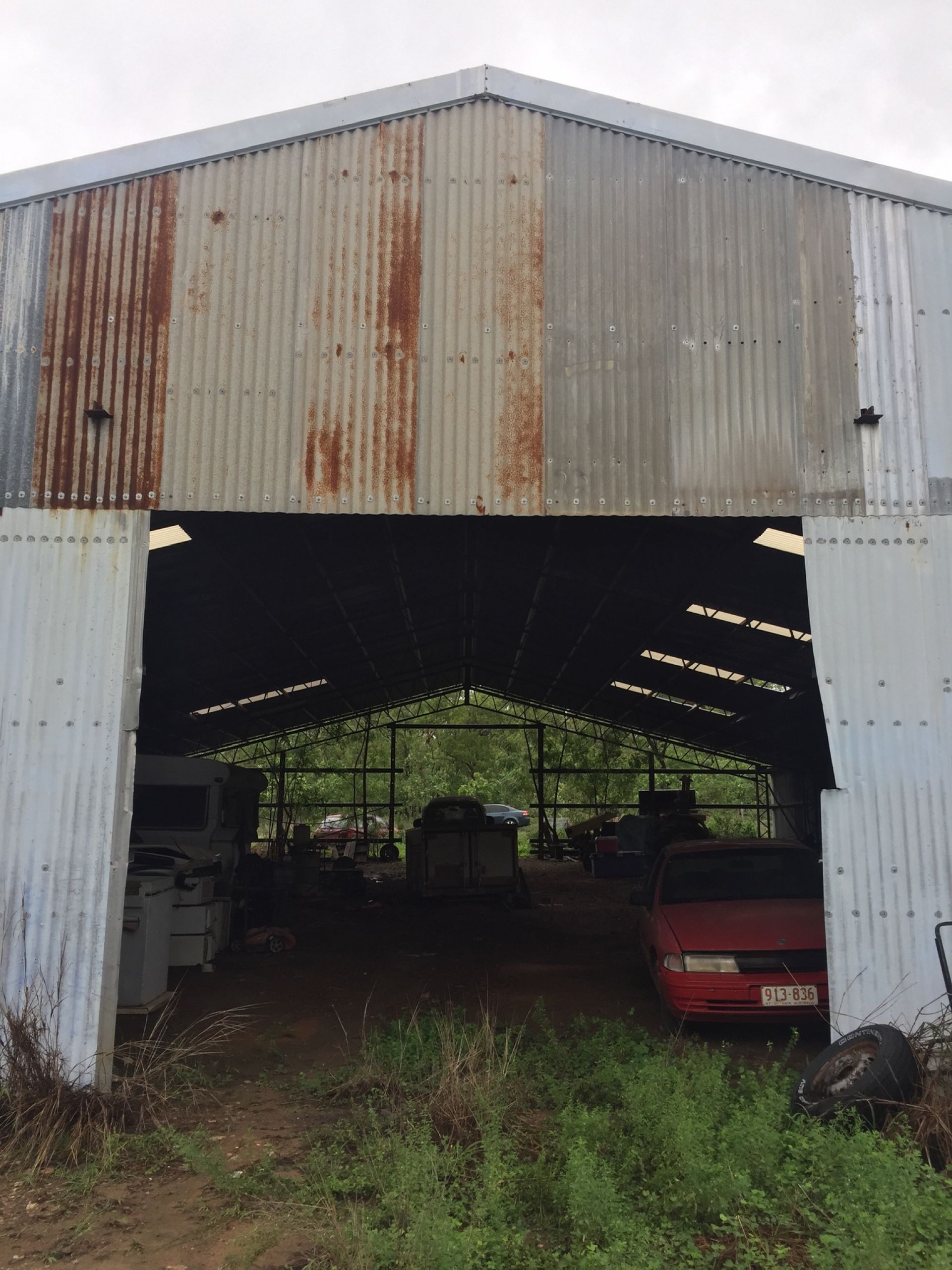 The Building approved coded sheds cladding is old with rust but the portal frames and purlins are in great structural condition with numerous options to leave as a shed or for the first home buyer to place a Caravan or Transportable underneath and or possibly close in a section of the shed to start building your home leaving enough room for a open space verandahs and still leaving plenty of room for shed and under cover parking.