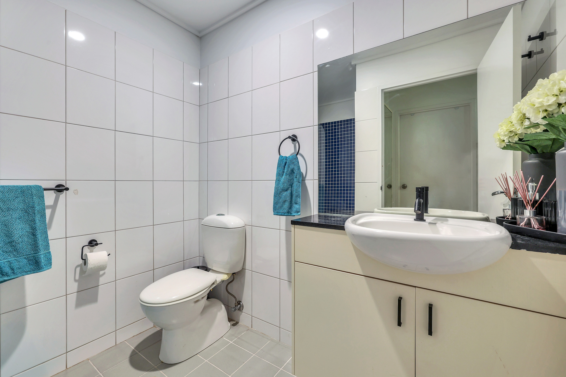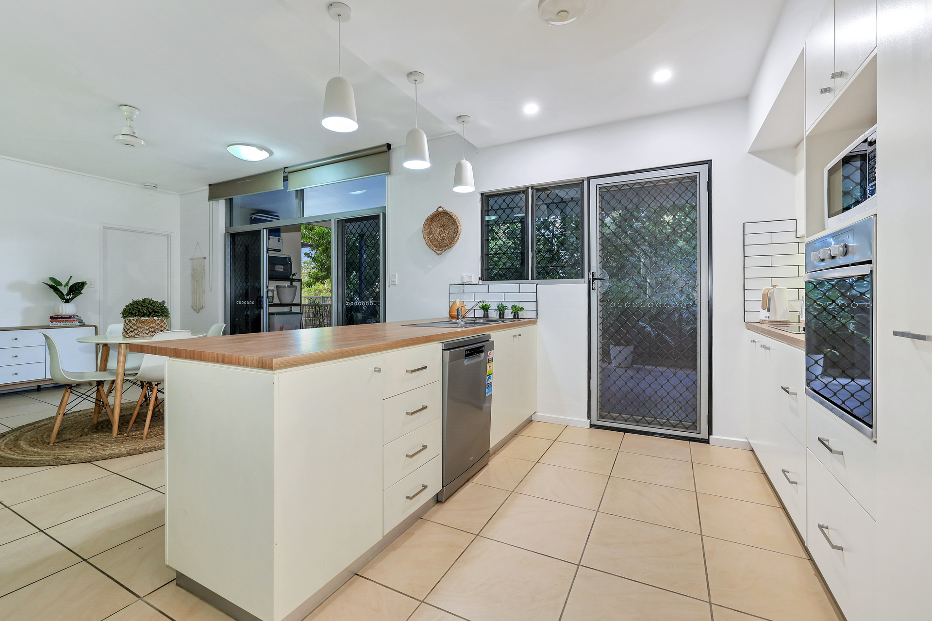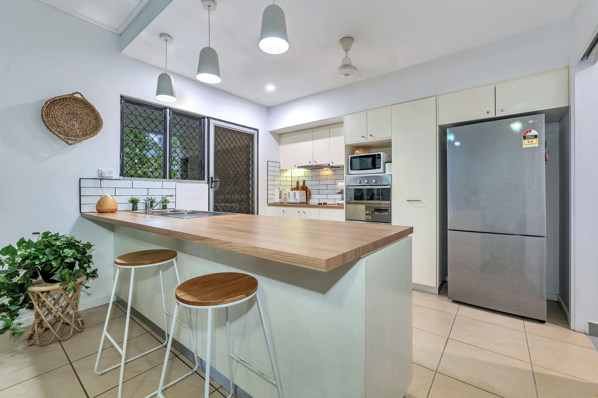 The modern laundry with a beautifully styled splash back and round sink will turn heads. It has recently been renovated and features additional hanging space and overhead shelves.