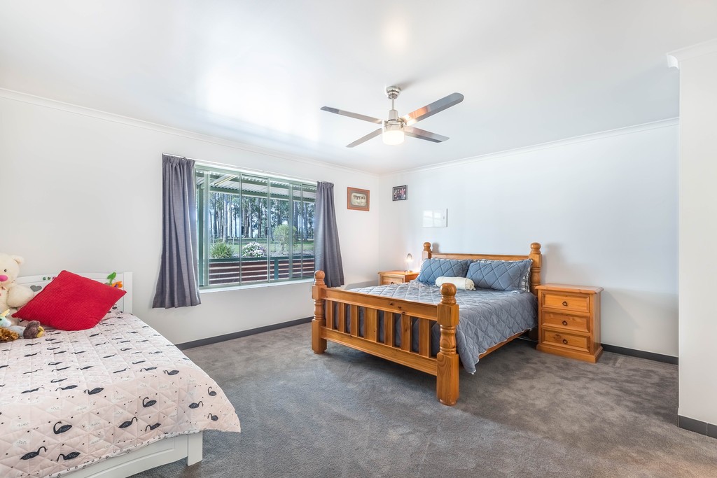 In addition to all of the above, this spectacular property includes thermal walls and solar panels in the main home, a double bay garage/shed, fully concreted and powered with auto/twin roller doors and workshop/storage. Separate machinery shed fully concreted and powered with double sliding doors, mezzanine and concrete hardstand. One x 124,000-litre steel-framed water tank 1 x 44,000 tank run-off dam, extensive reticulation and water trough supply for livestock. Woodshed, utility shed chook shed and run pigpen.