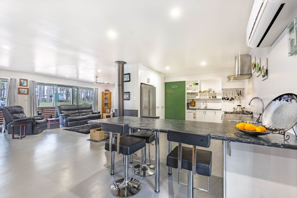 The main dwelling is spacious and functional with a large central open plan living, dining and kitchen with scullery and an office nook. With stylish and practical, easy-care epoxy painted concrete floors, stainless steel finish ceiling fans and down lights. In addition, it has a Manor wood that fire heats the whole house, a reverse cycle air-conditioner, and sliding doors on opposite sides that connect to a beautiful wrap-around veranda. The kitchen and scullery are a home chef's dream with quality appliances, a large built-in pantry and plenty of bench space. Lastly, your technology is sorted with the addition of a Foxtel connection and Telstra smart box.