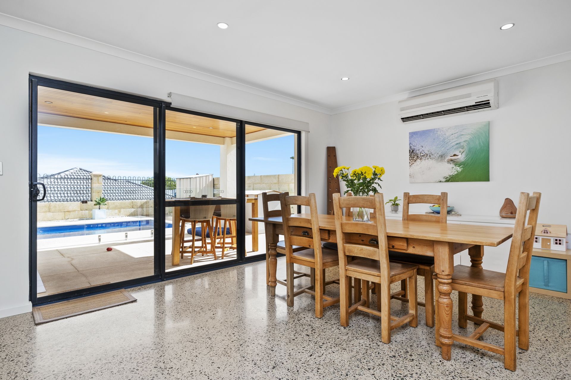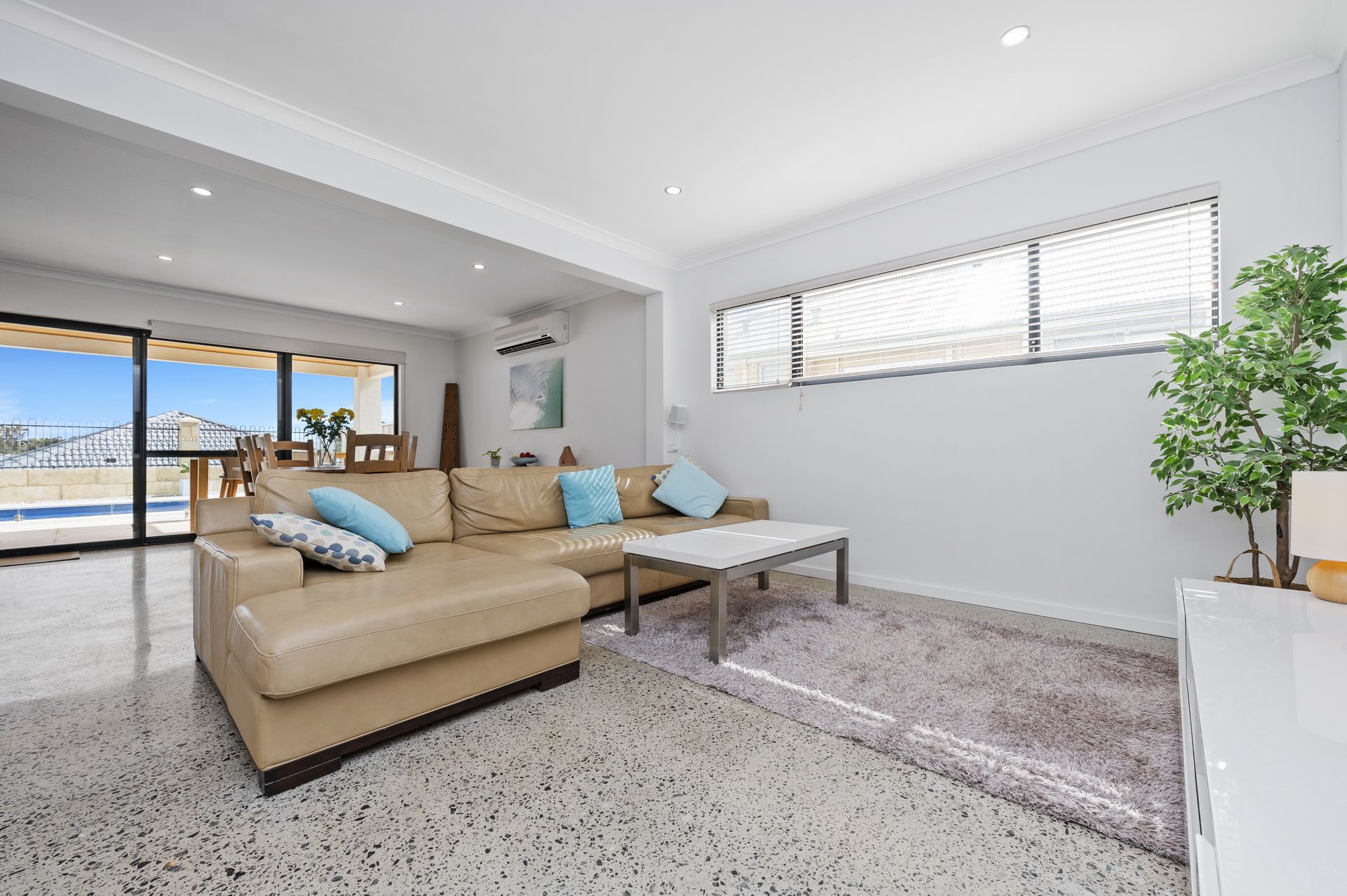 The large open plan living area leads on to the spacious Alfresco overlooking the below ground saltwater pool.