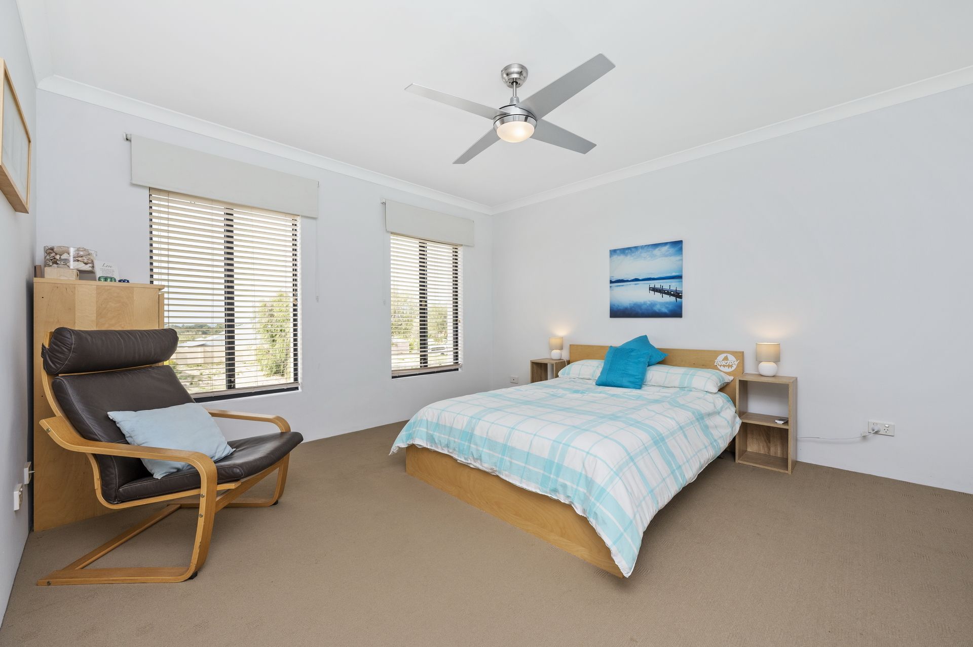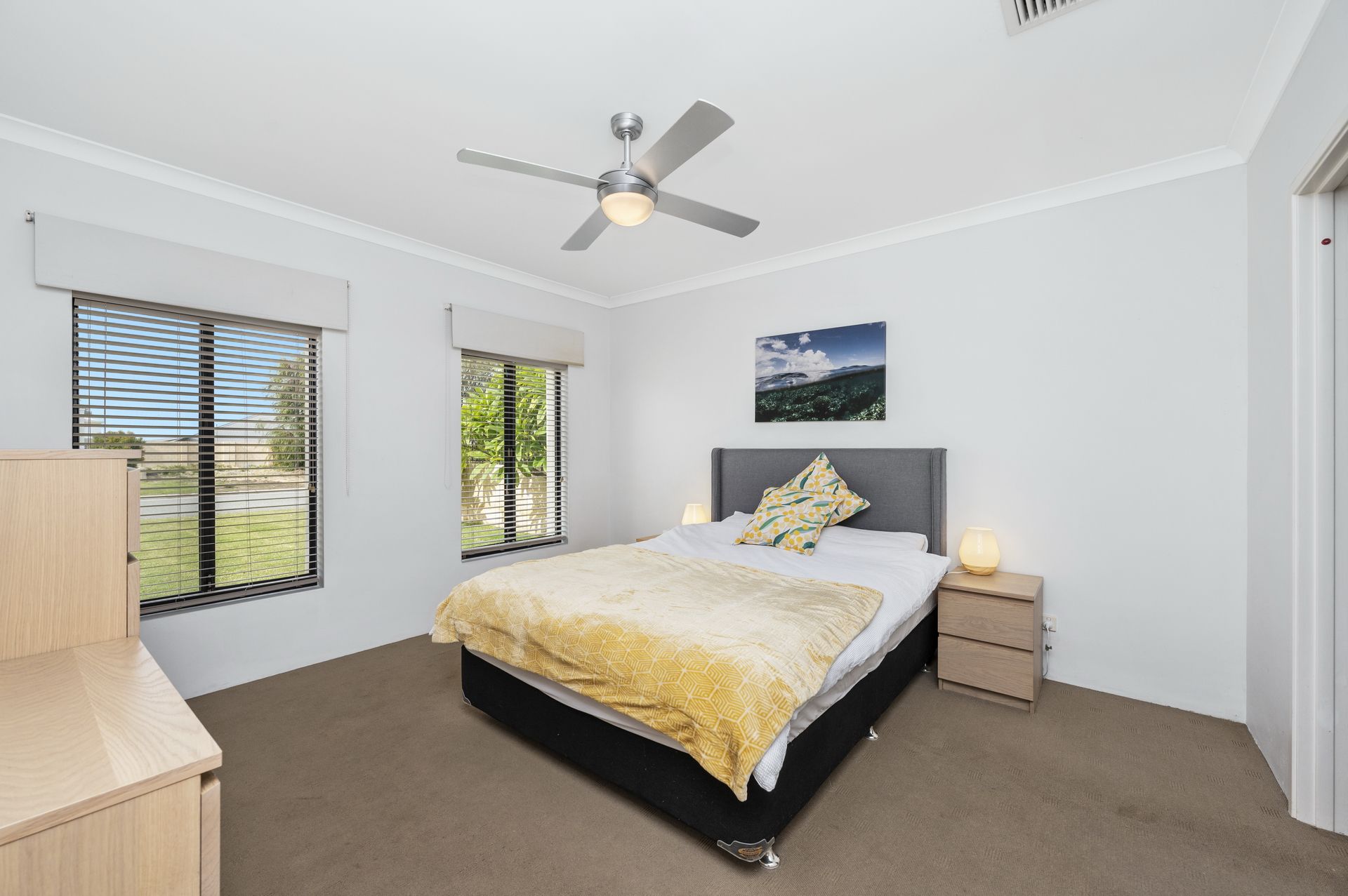 Ceiling fans in bedrooms.