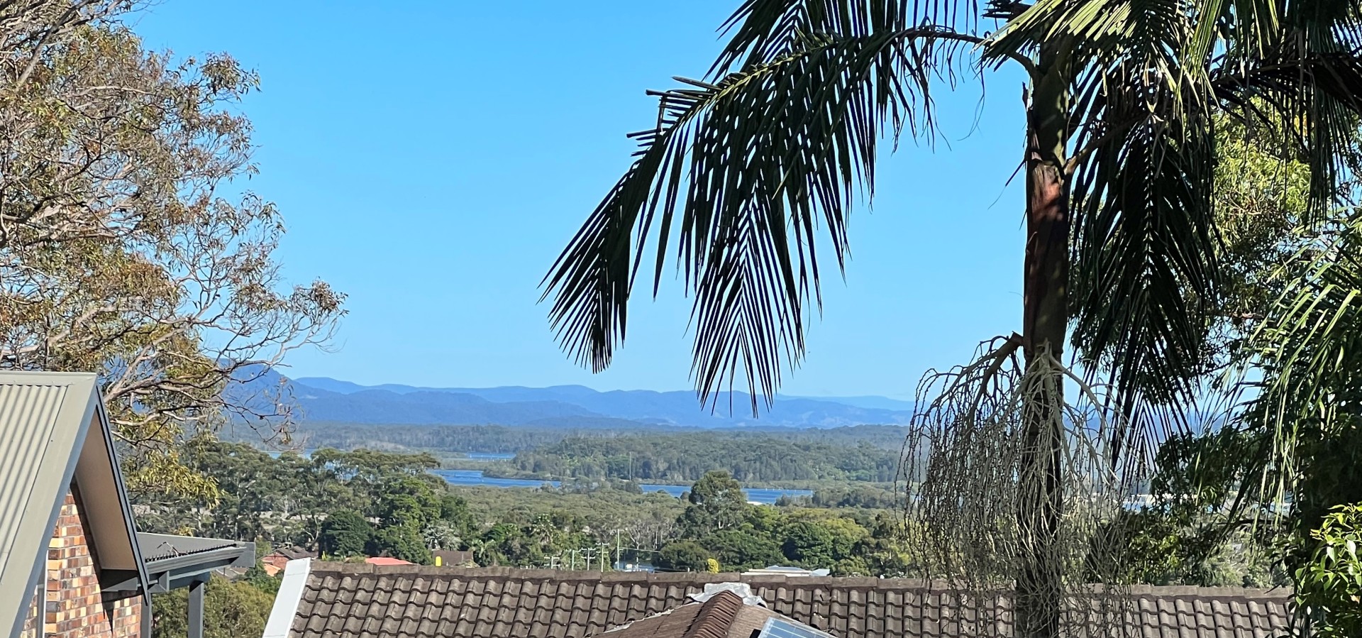 Upstairs has a large glass sunroom that takes in the Northern and Western sun, with views out to the lake distant mountains and Tuncurry end of bridge. Absolutely stunning sunsets and the fireworks are great on New Year's. Old style Bathroom that is in great condition (retro) and well used kitchen needs some TLC.
