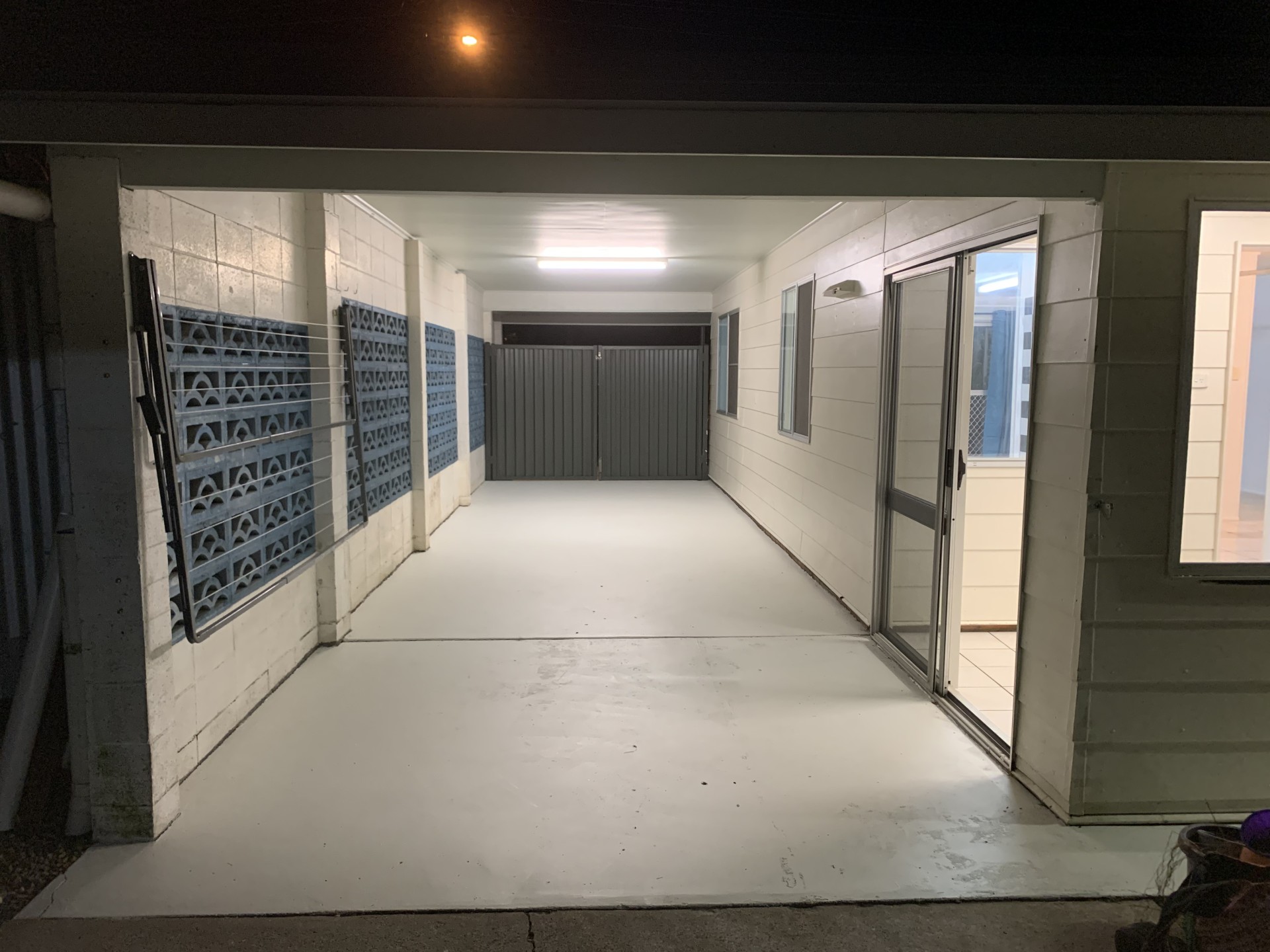 5 secure off road covered parking spaces, including single lock up shed/workshop with power connected. Front carport sits 2 meter at lowest point and allows for even your 4x4 to be driven out to the back yard.