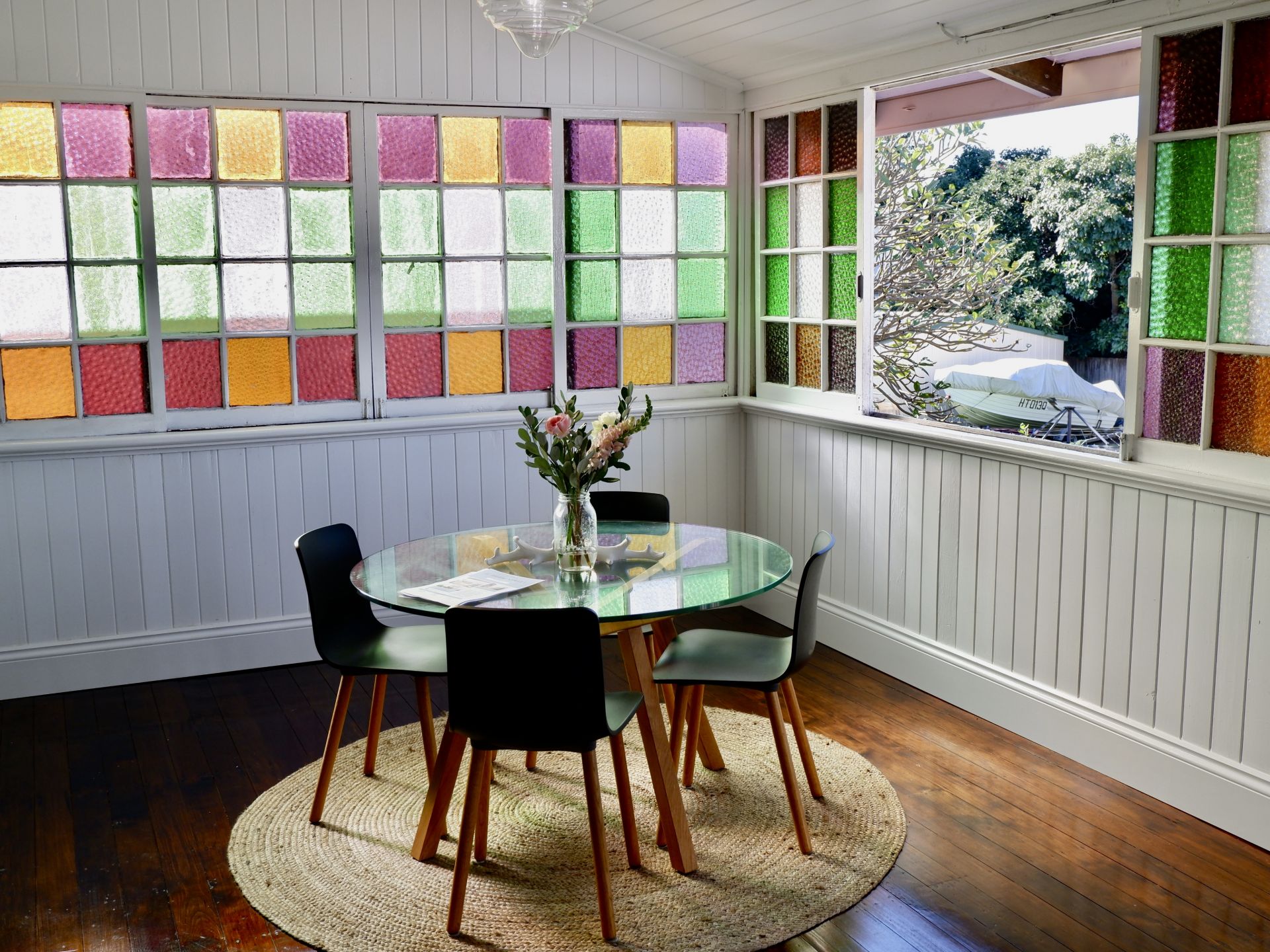 Lovely original coloured glass windows in the Dining Room and front of the house.