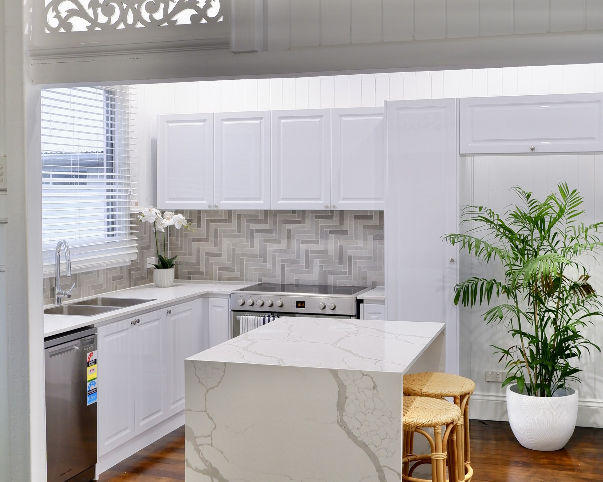 Gorgeous brand new Hamptons style kitchen with stainless steel appliances,