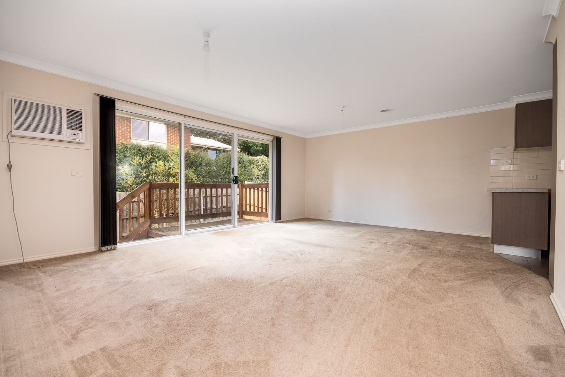 Ducted gas heating, boxed air conditioner, walk through bathroom to main bedroom.