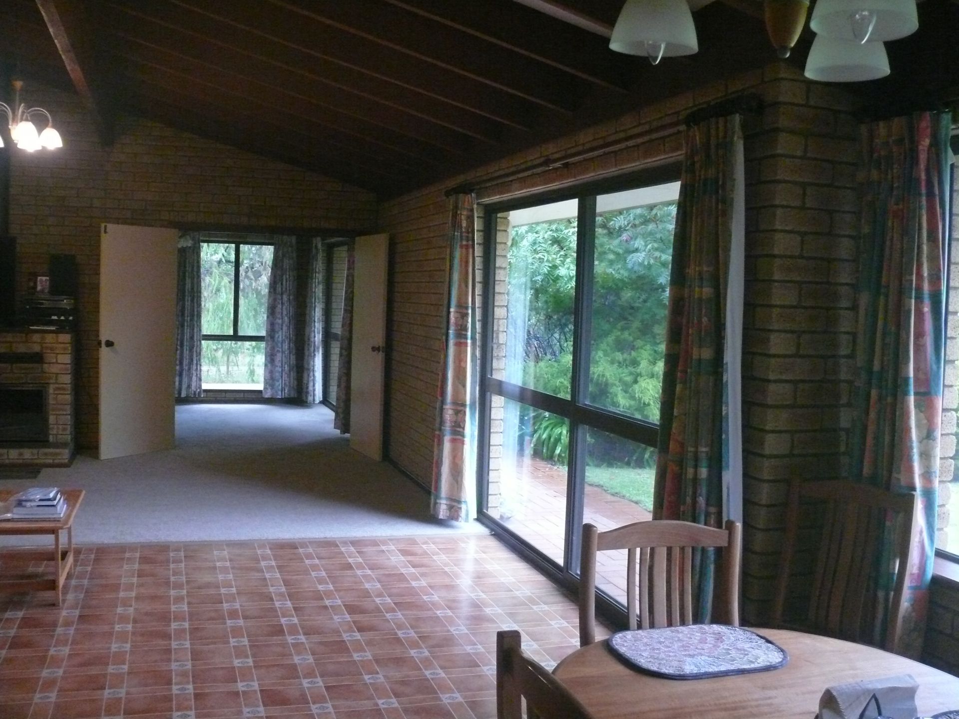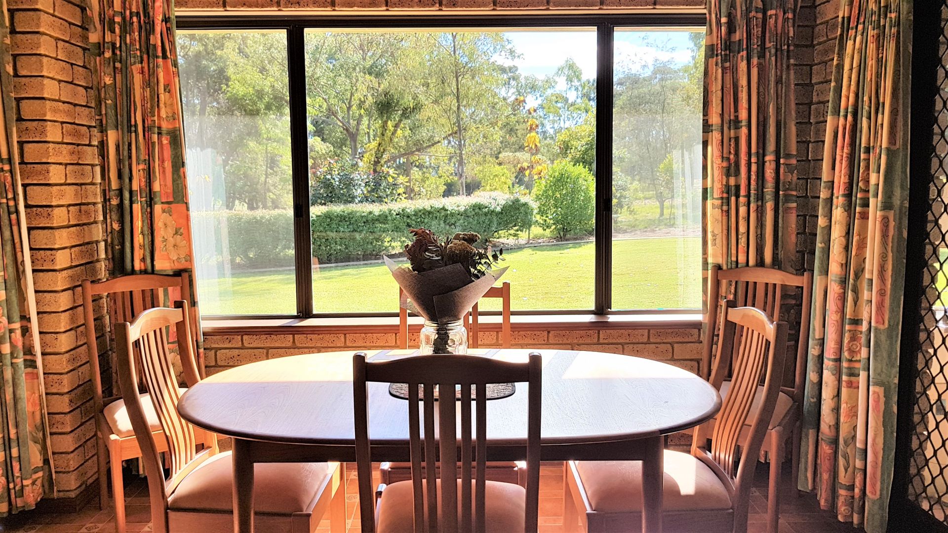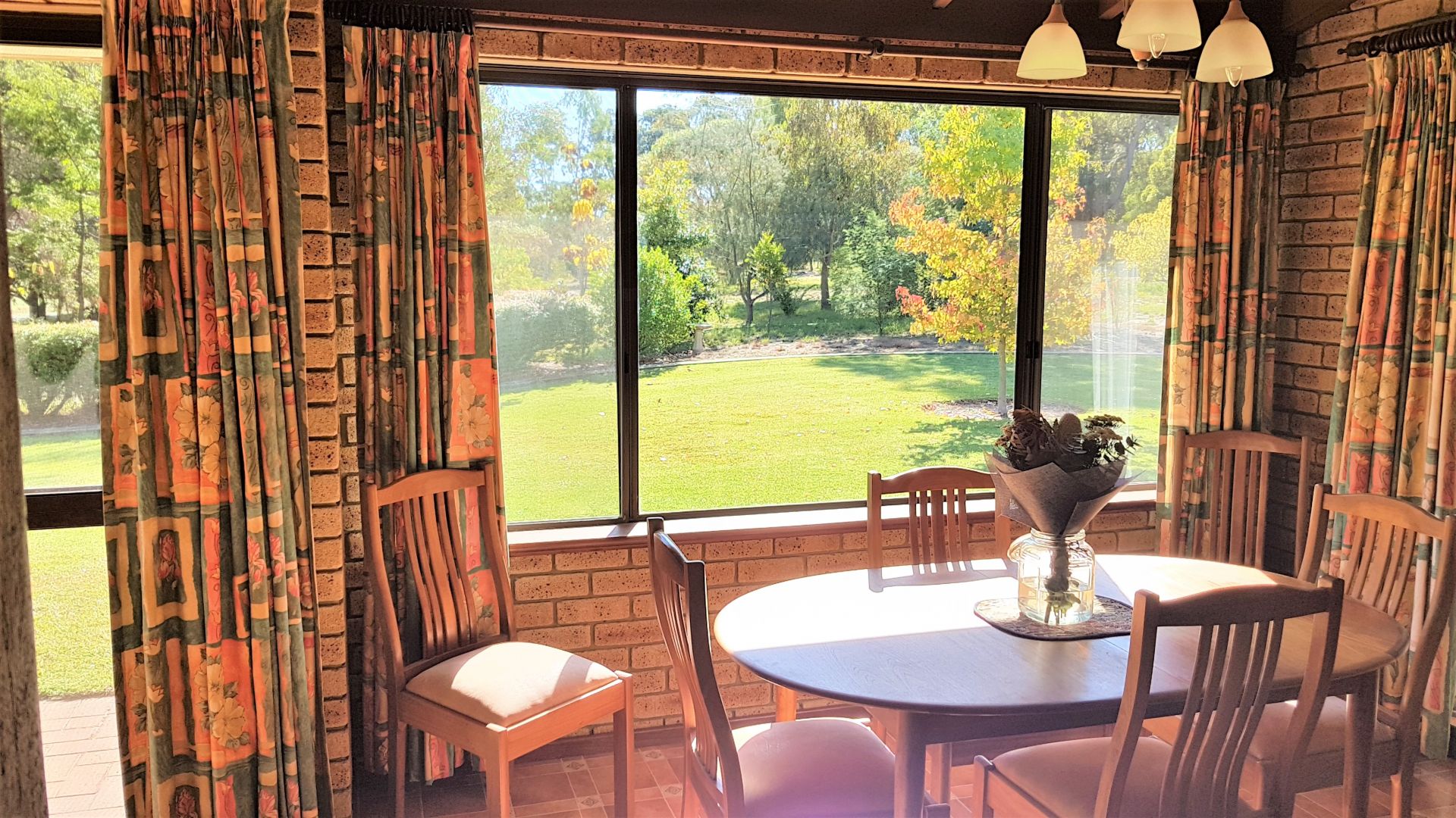 The house features extensive feature brick and jarrah trim with exposed beams through the living and lounge areas.