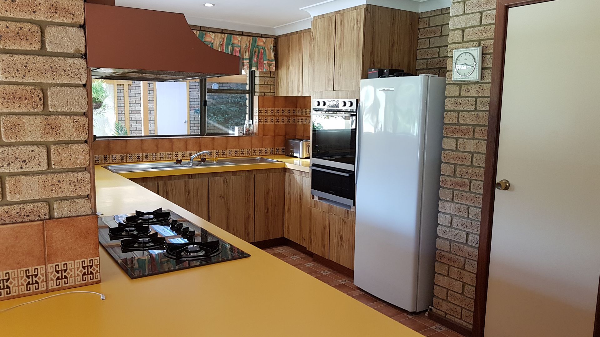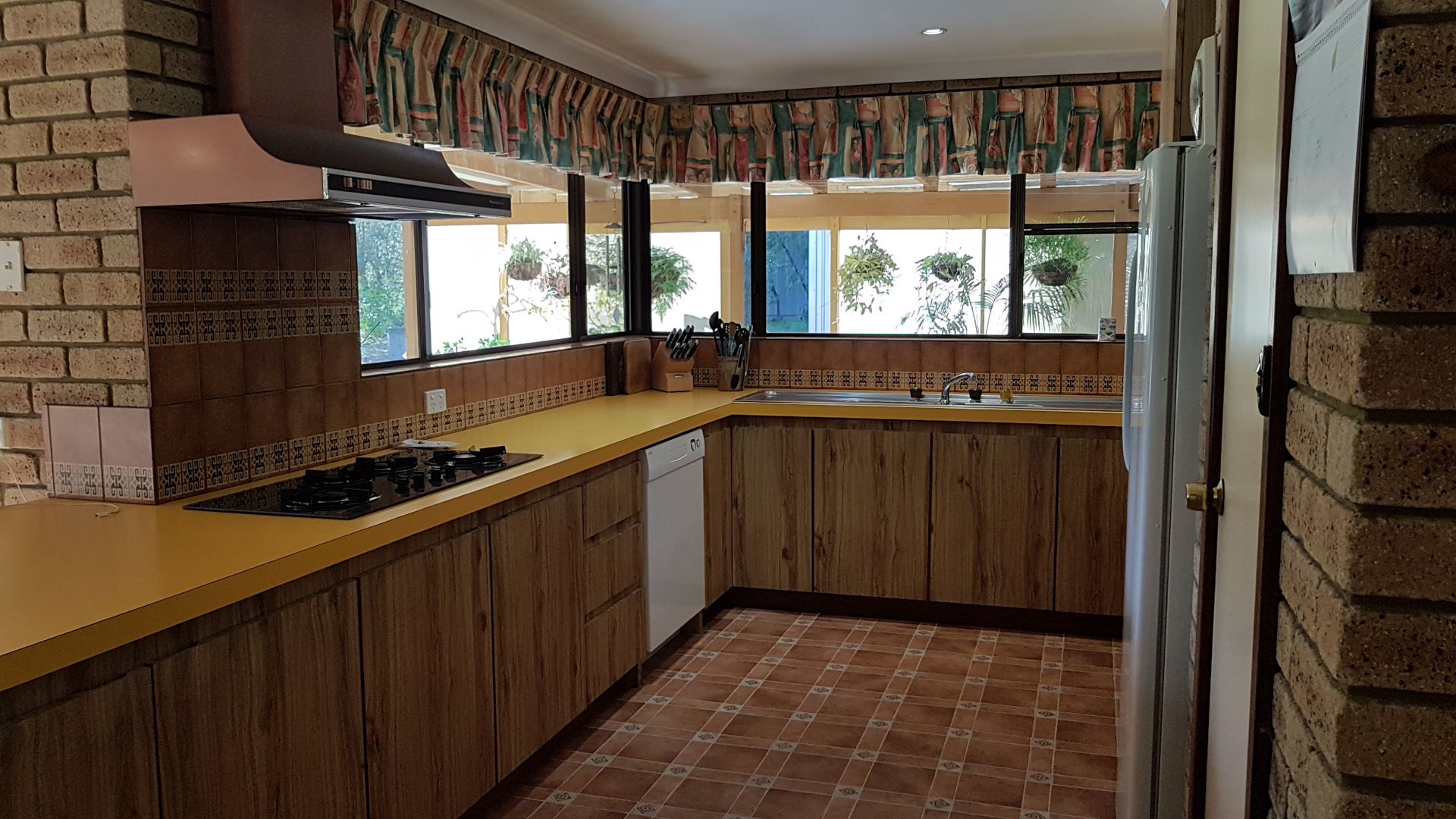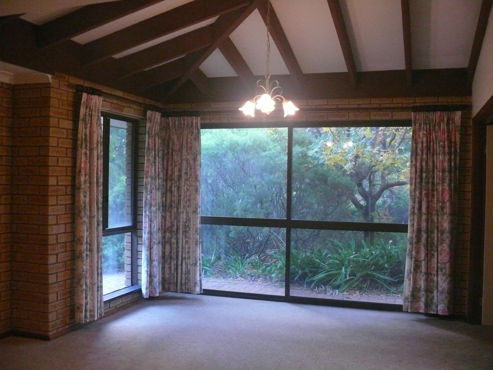 The house features extensive feature brick and jarrah trim with exposed beams through the living and lounge areas.