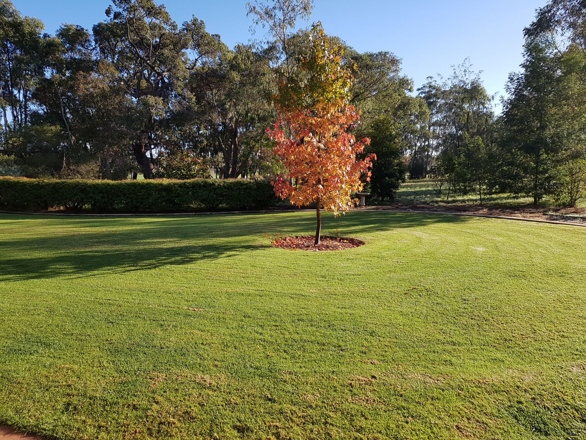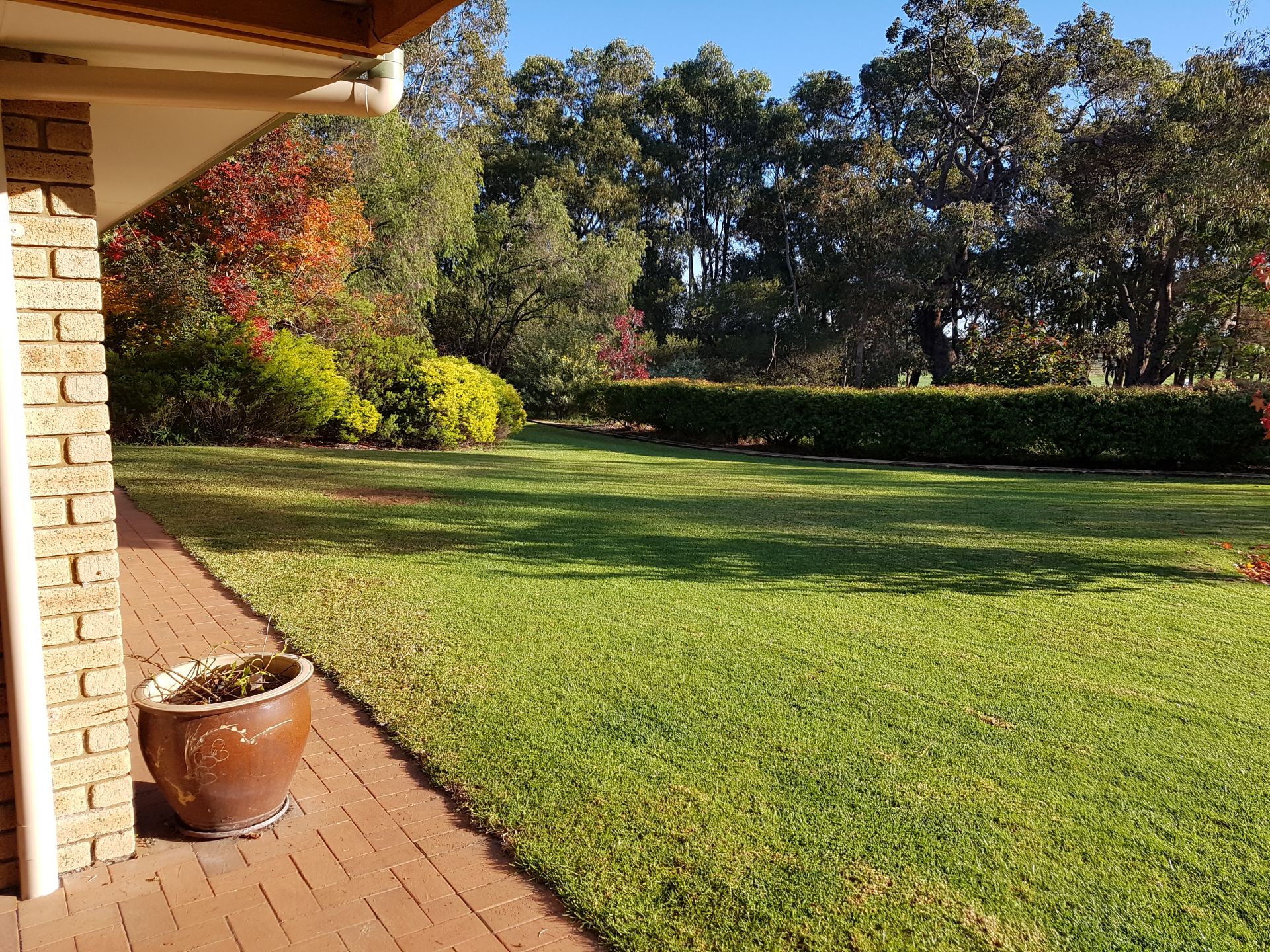 There is a reticulated citrus orchard producing eating and juicing oranges, grape fruit. mandarins, limes and lemons. Also eating and oil olives, figs and mulberries.