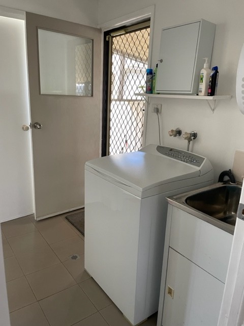 The laundry door, (with Pet Flap) leds out to the carport, large garden shed and backyard for a pet with artificial turf for easy maintenance.