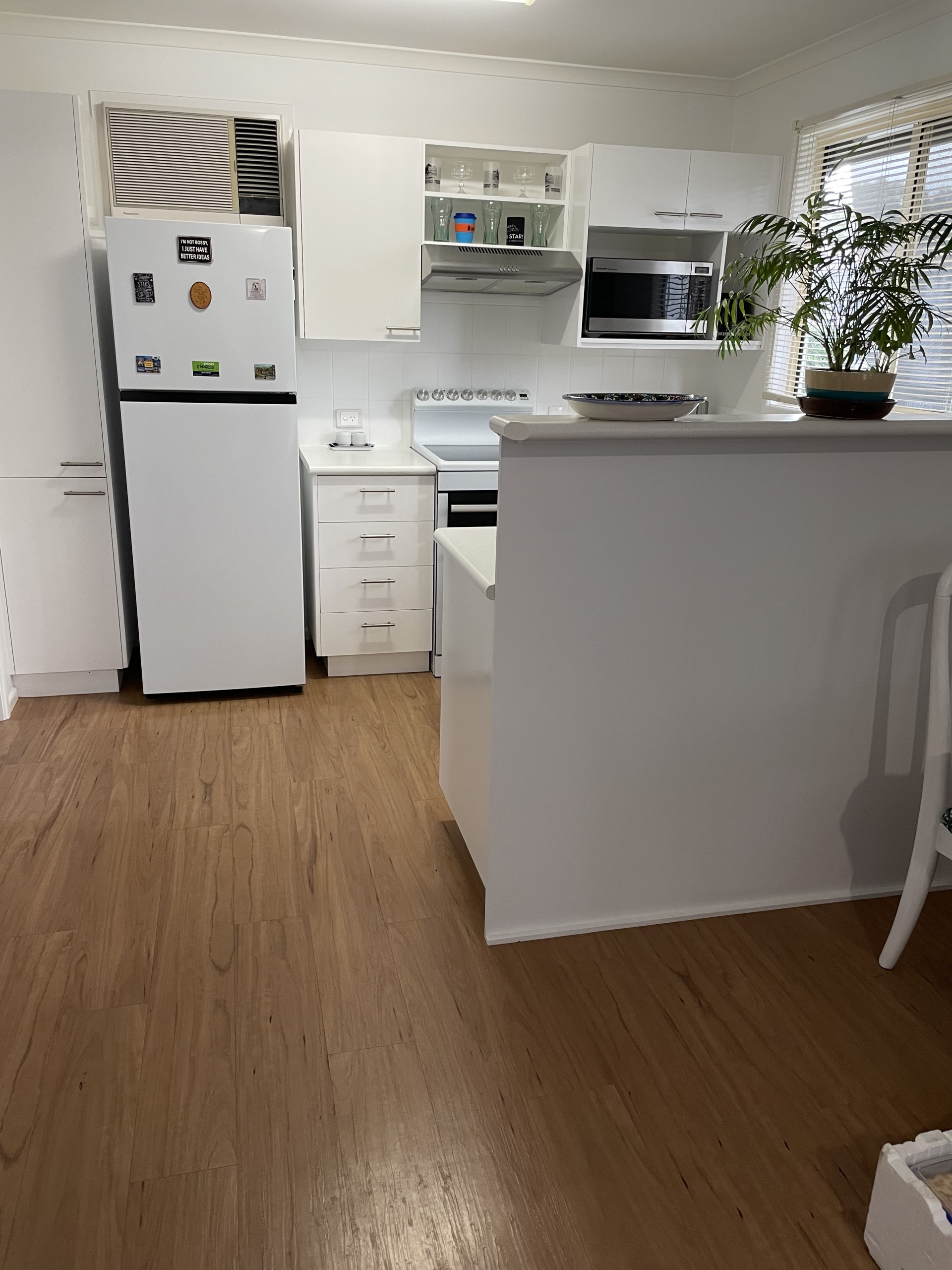 A good sized functional kitchen, has a pantry and plenty of storage space and bench tops and is complimented with a modern Euromaid Ceramic cooktop stove.