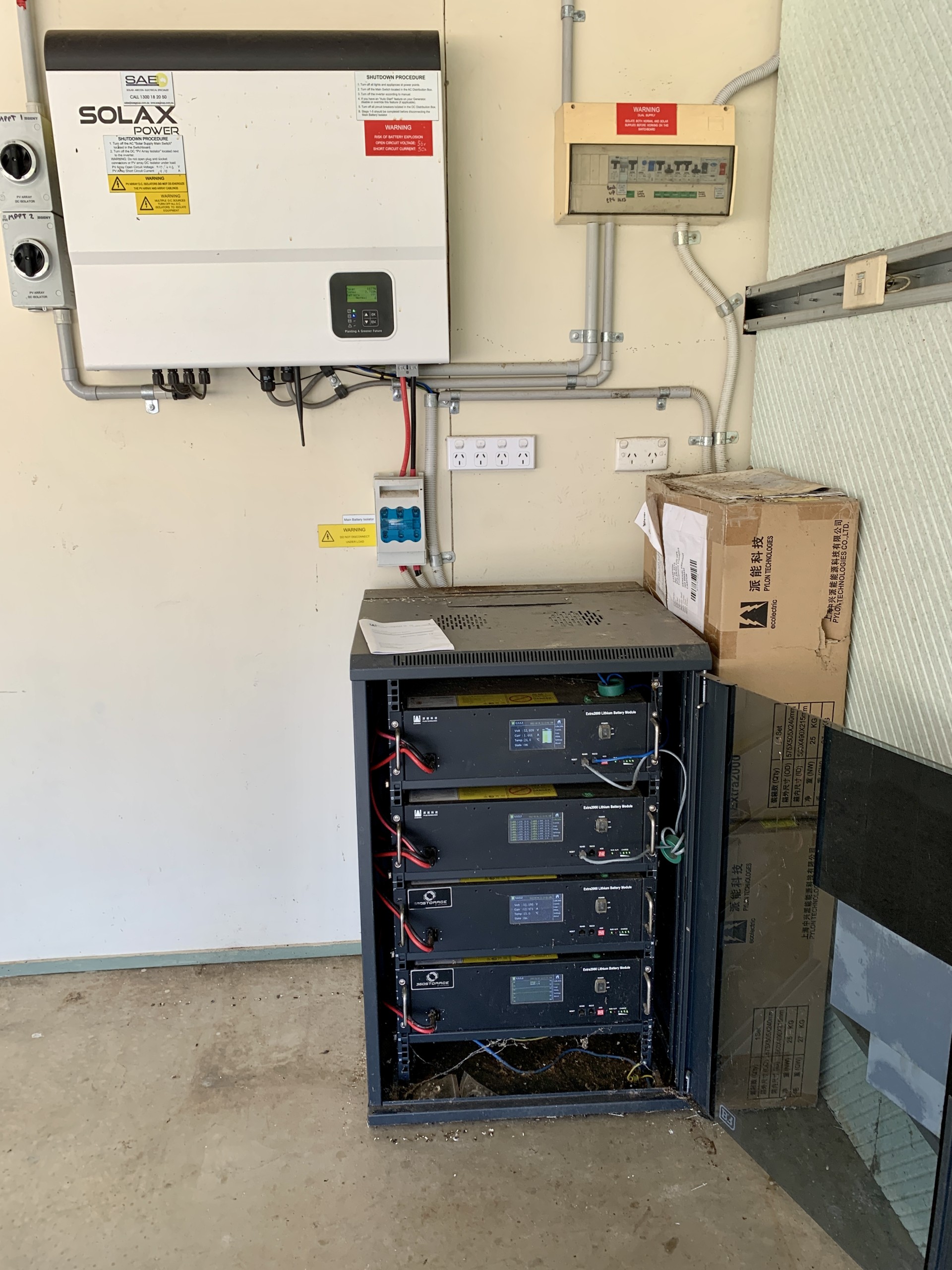 • 16m x 12 m powered shed with 6.5kW solar power panels and secured and housed 8kWh battery backup for the entire residence