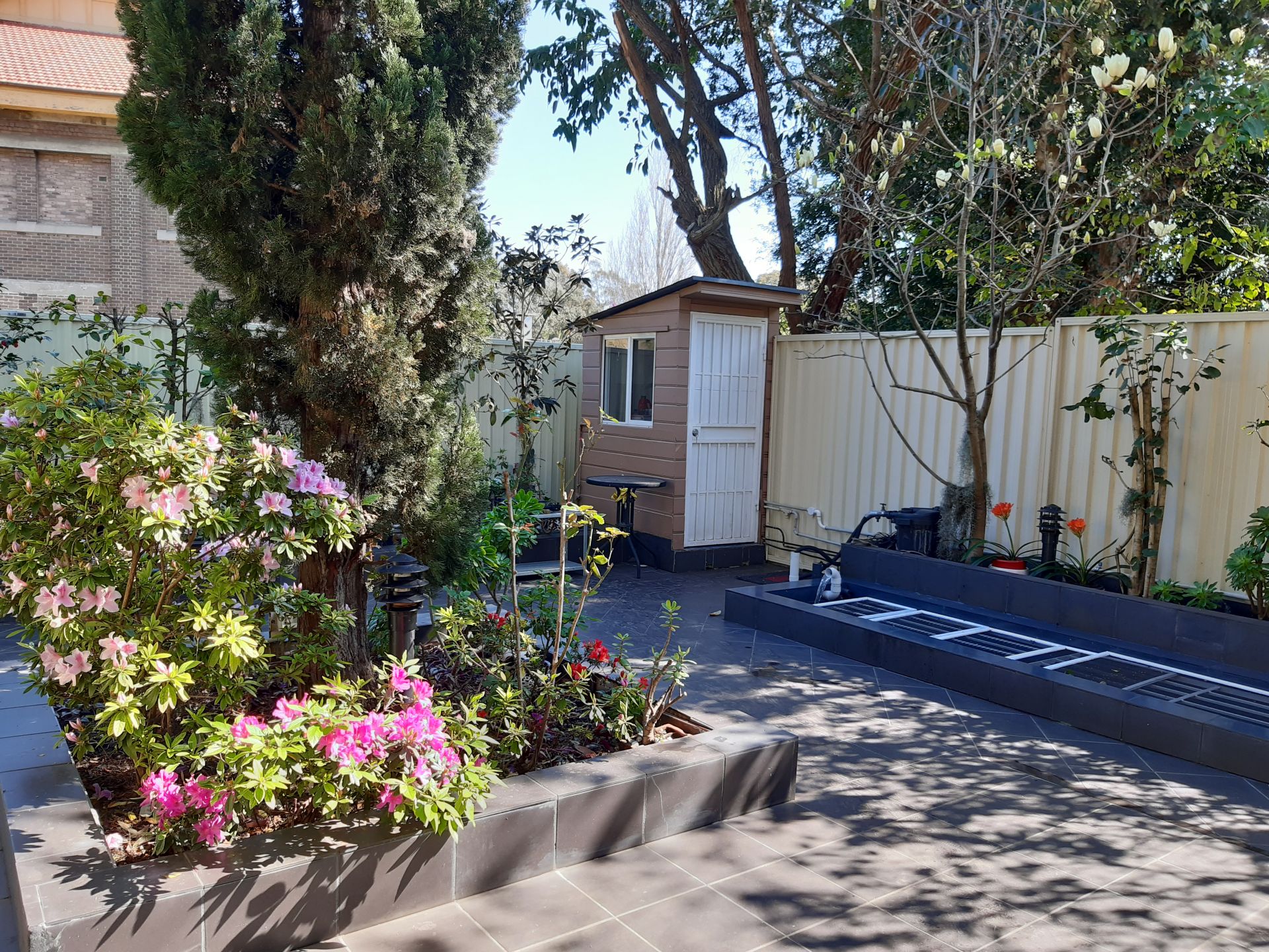 - Leafy paved landscaped garden with fish pond and water features to make a great tranquil entertainment space