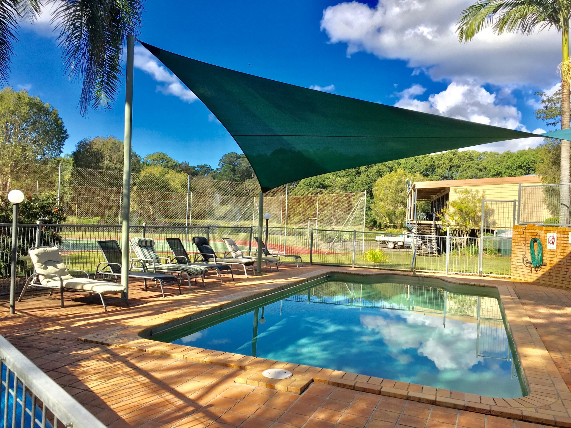 There is a gazebo and barbecue area next to the canal at the back and a heated pool/gazebo area and tennis court at the front next to the large pond.