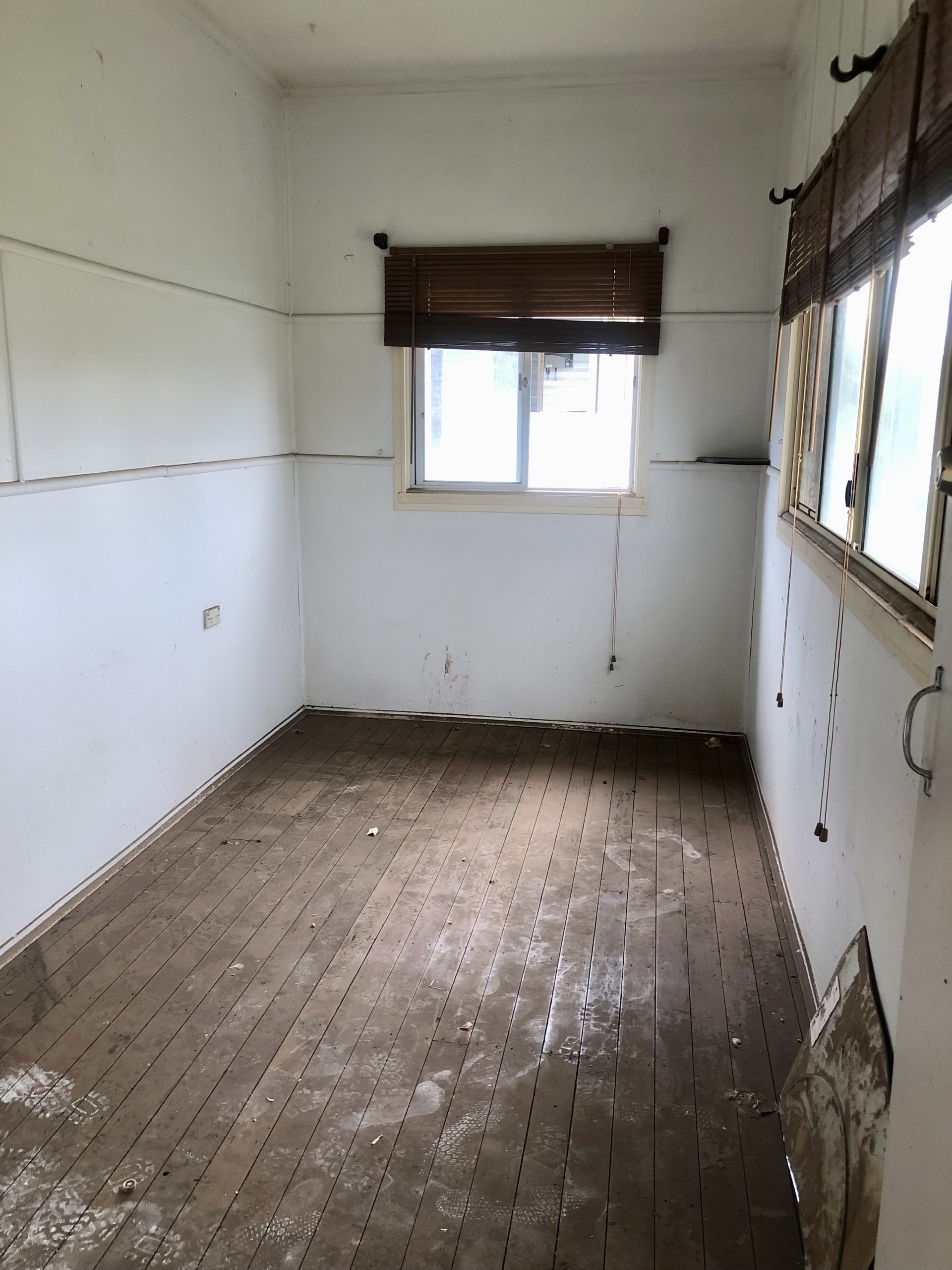 The timber floorboards are still in good condition.