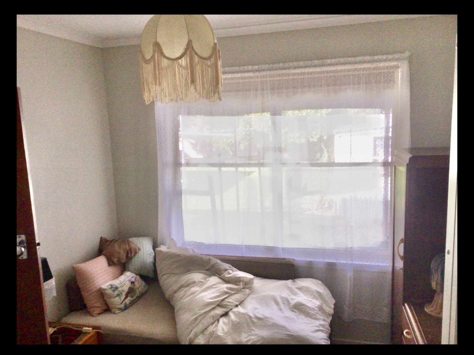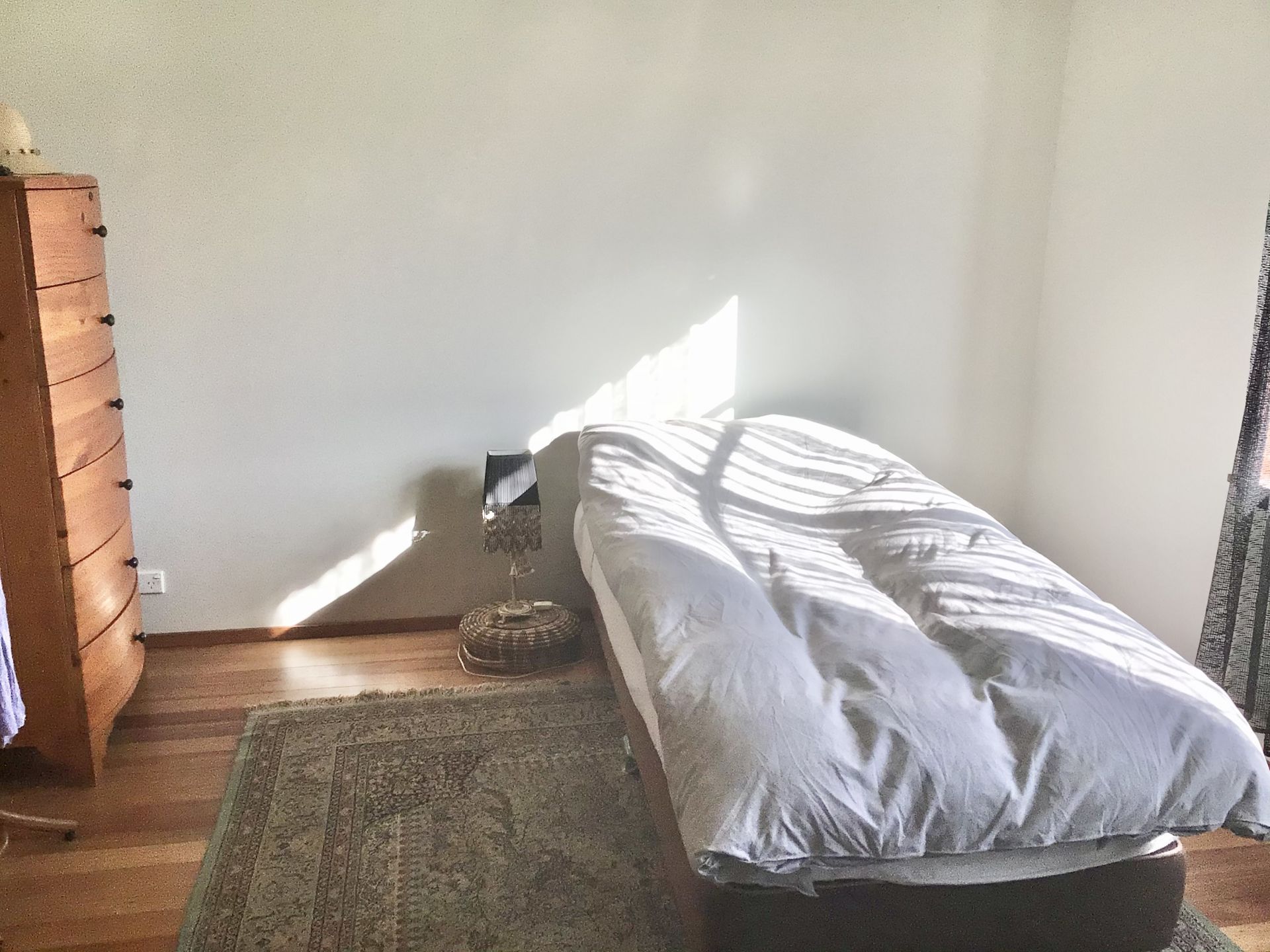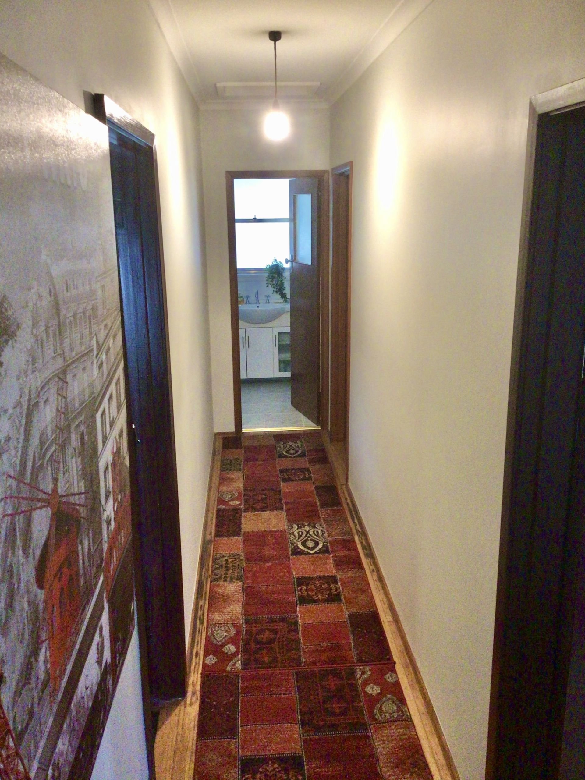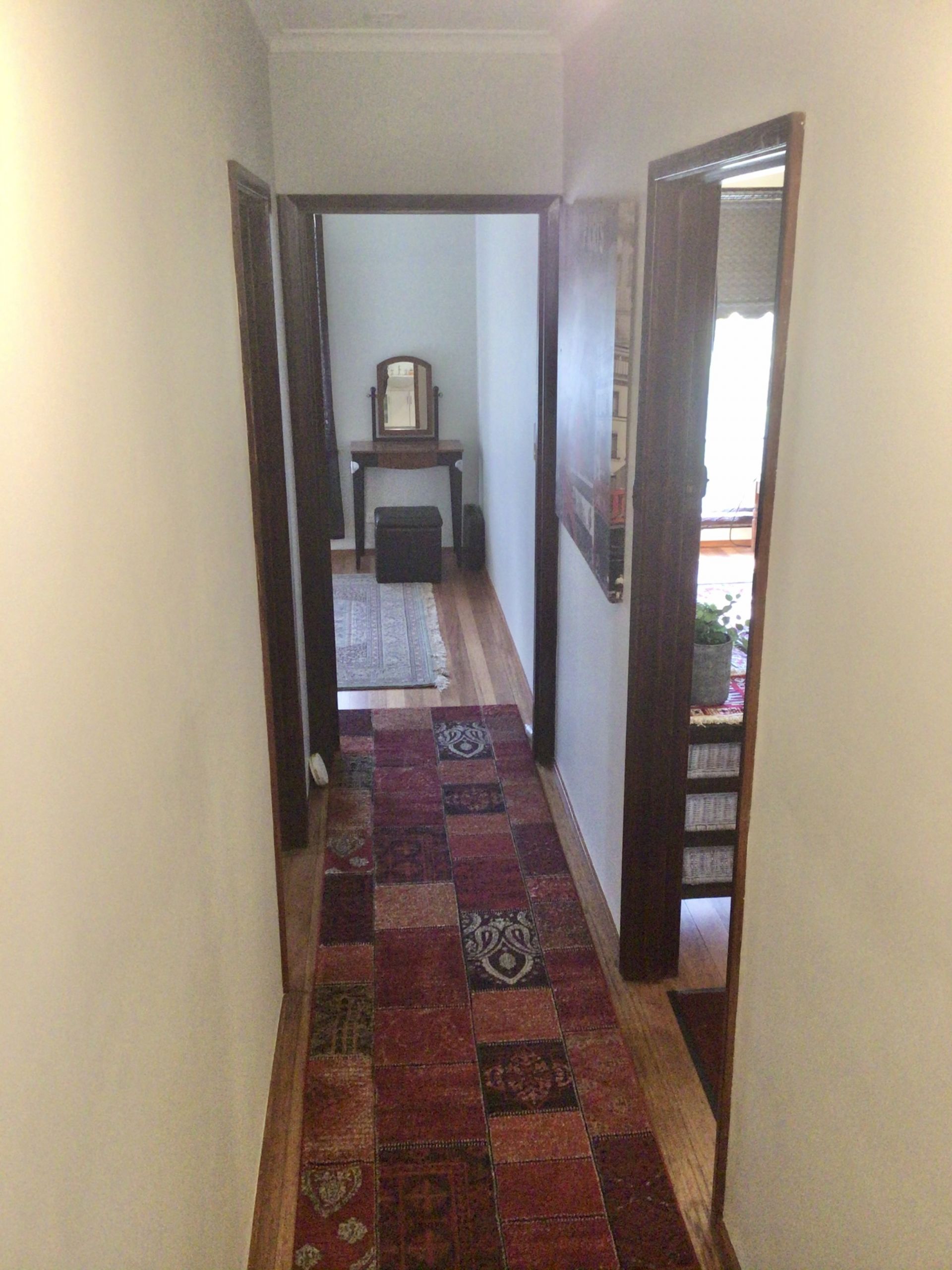 3 good sized bedrooms - a large 6x4 metre lounge room - combined kitchen/meals area - bathroom, and seperate toilet. Laundry needs attention.