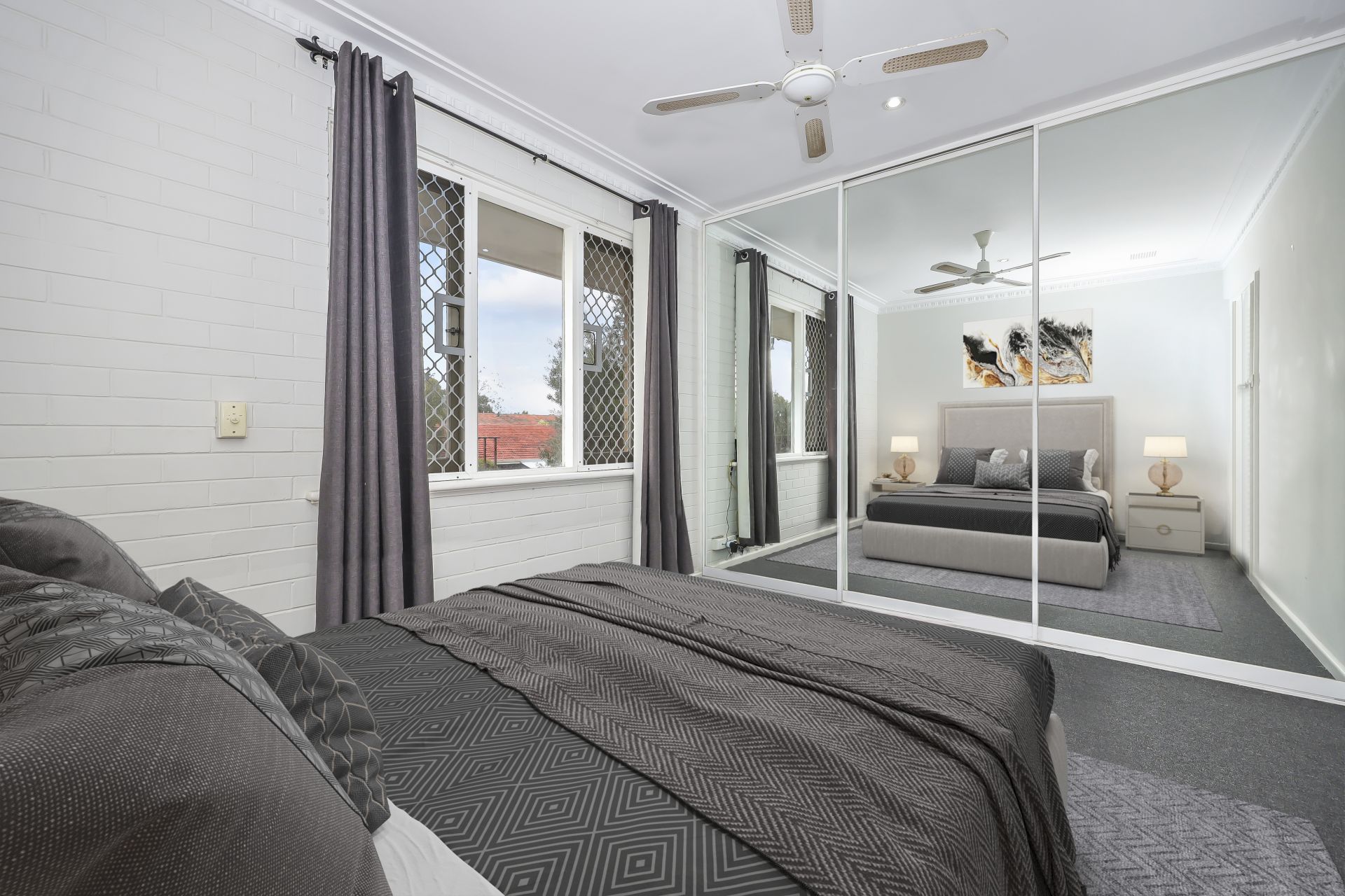 * Master bedroom with built in robes