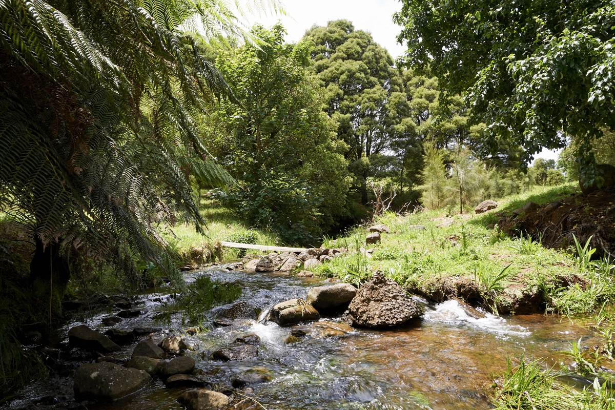One and only. Just 150 metres from the Main St. Backs onto Caalong Creek. Gardener's dream: rich volcanic soil, high rainfall, no drought, no bushfires, no floods. Caalong Creek is spring-fed and flows through the southern end of the property. It has never stopped flowing. The creek reserve of 1600 square metres is currently in the process of being bought at pro-rata 2019 land prices from the Lands Department. If you decide to cancel this acquisition you can continue to pay the $149 pa enclosure permit fee. If it is absorbed into the title, it will be a boundary adjustment only. The land is currently zoned R2. NBN is at the front of the property. Electricity, water, and sewage are connected.