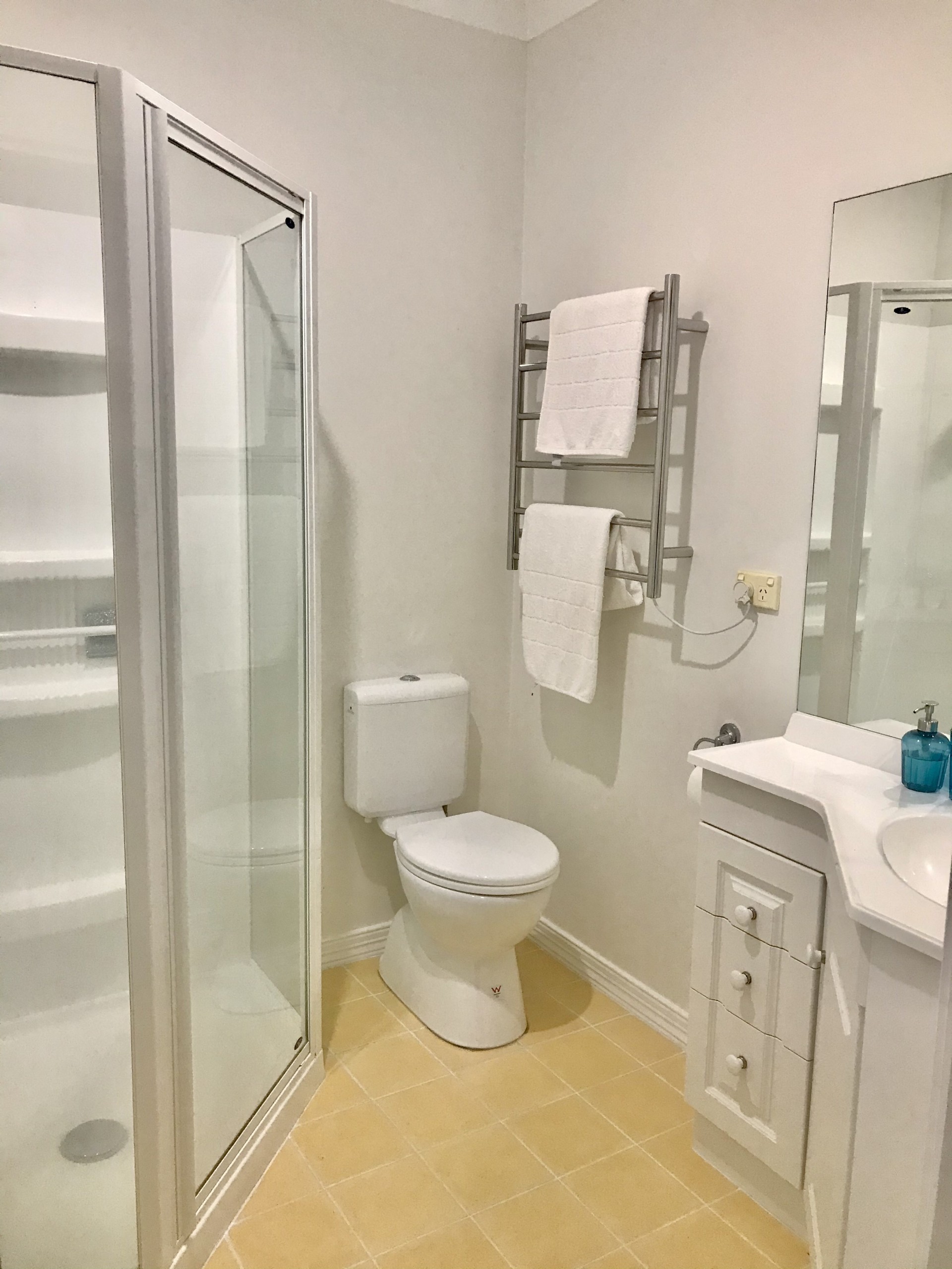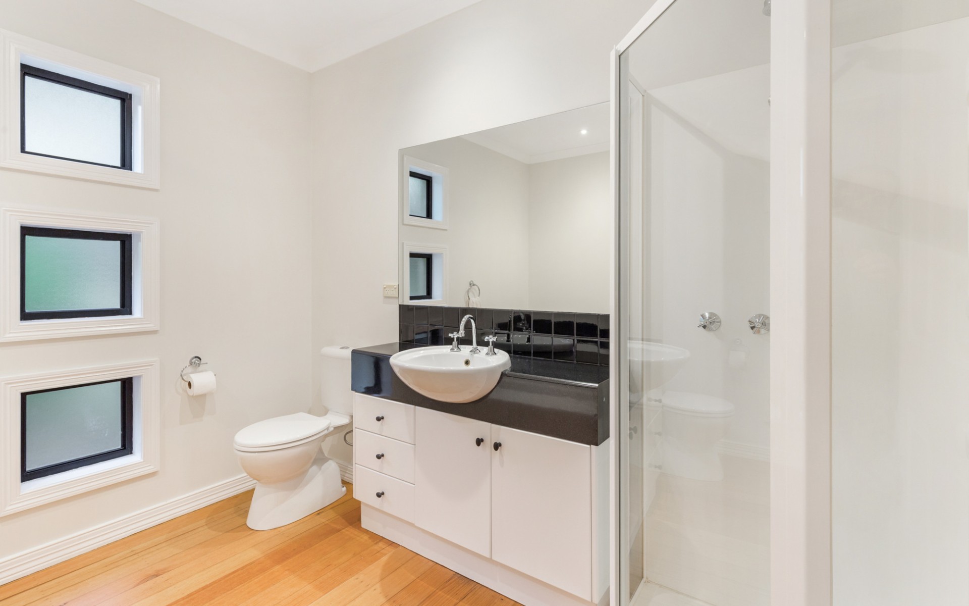 The spacious family bathroom has a separate bath, and shower, and both bathrooms are fitted out with new toilets, gleaming tap ware and accessories including a heated towel rail in the ensuite.