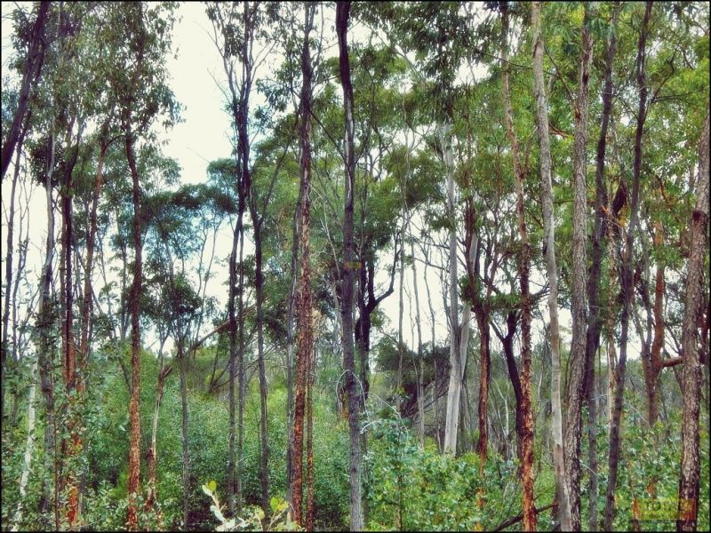 Natural bushland block scattered with Eucalypt woodland tall scattered peaceful trees including Eucalyptus flowering trees, Corymbia (smaller flowering Eucalyptus), grey spotted gums, Gum-Top Ironbark, Budgeroo, as well as Hando's wattle which together give a kaleidoscope of coloured blossoms with endless combinations of shapes, sizes, textures, fragrances and colours attracting pollinators such as interesting insects, including native bees plus attractive colourful birds. A mixture of many different types of grasses and assorted wildflowers and maybe bush orchids cover the ground.