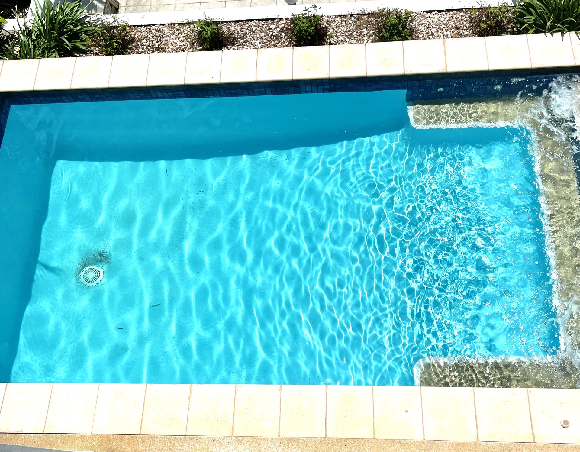 Relax and unwind in the swimming pool while taking in the views across the water to a small island. The property is fully tiled, with a neutral colour palette ready for you to add your own flair.