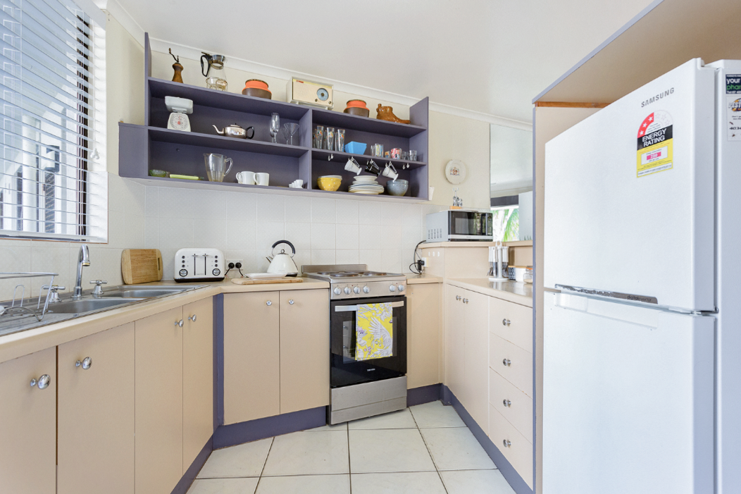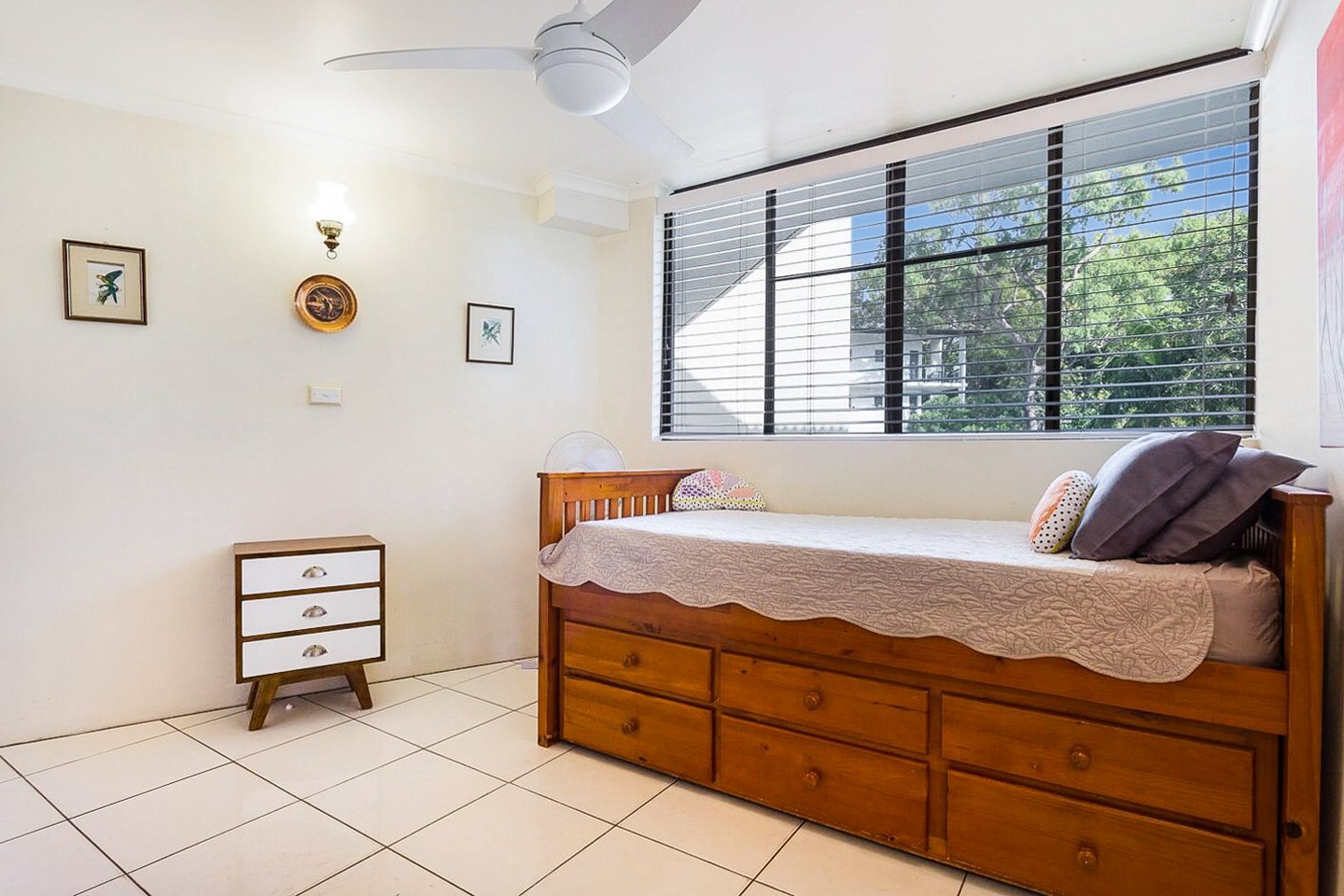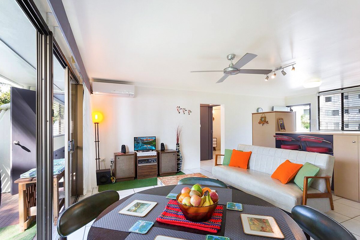 This unique, 1980's apartment block is perfectly placed looking out across the Coral Sea - direct access to the lush beach, kite-surfing, bike tracks and new children's playground.