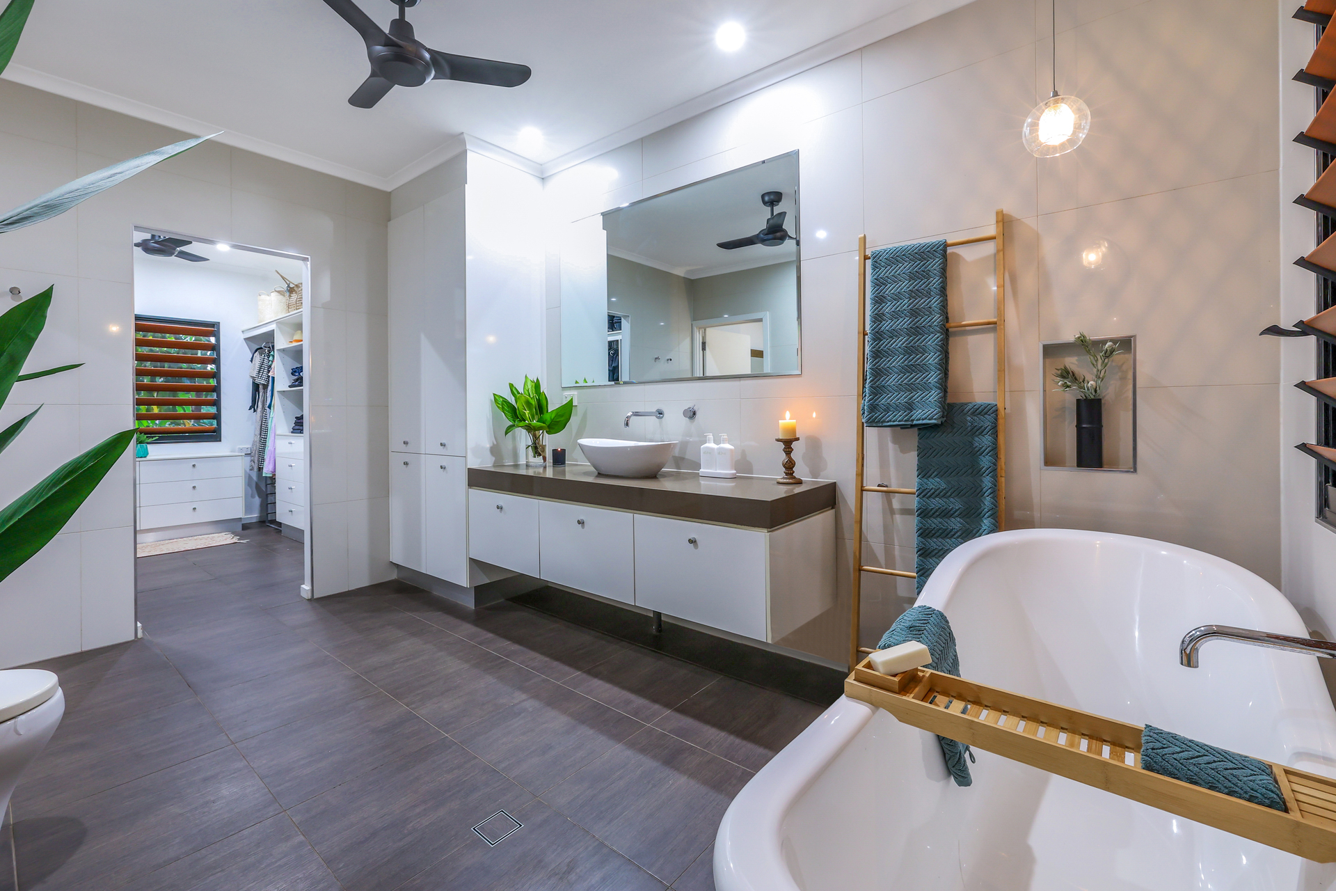 There are 5 bedrooms upstairs each with timber flooring and 3 with a robe. The master suite is elegance redefined with a lux ensuite that includes a free standing bath tub and an oversized walk-in robe with a bounty of storage space.