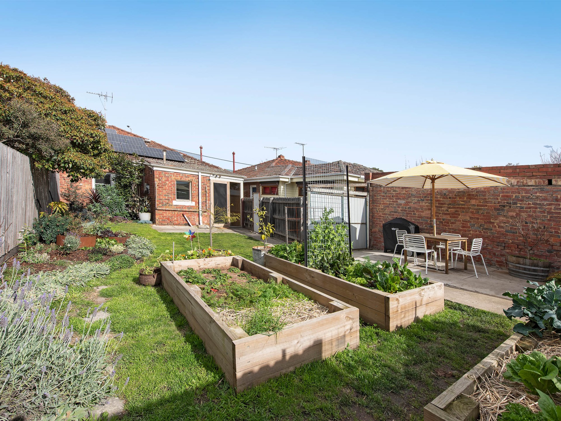 Occupying a generous 320sqm lot, the home is exceptionally well-presented. The current floor plan comprises two large bedrooms, spacious front lounge and extended access to the laundry to the North-facing rear garden.