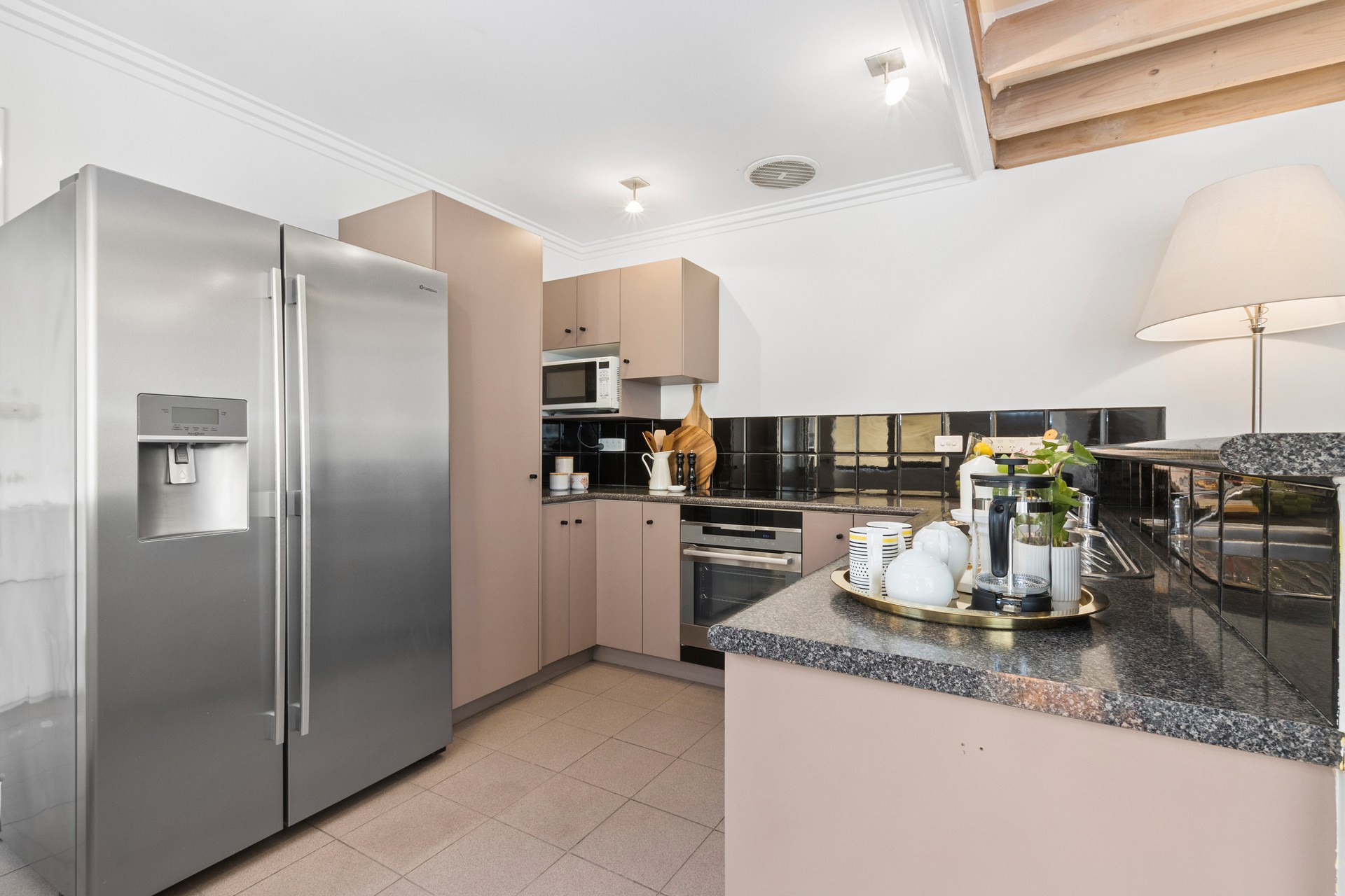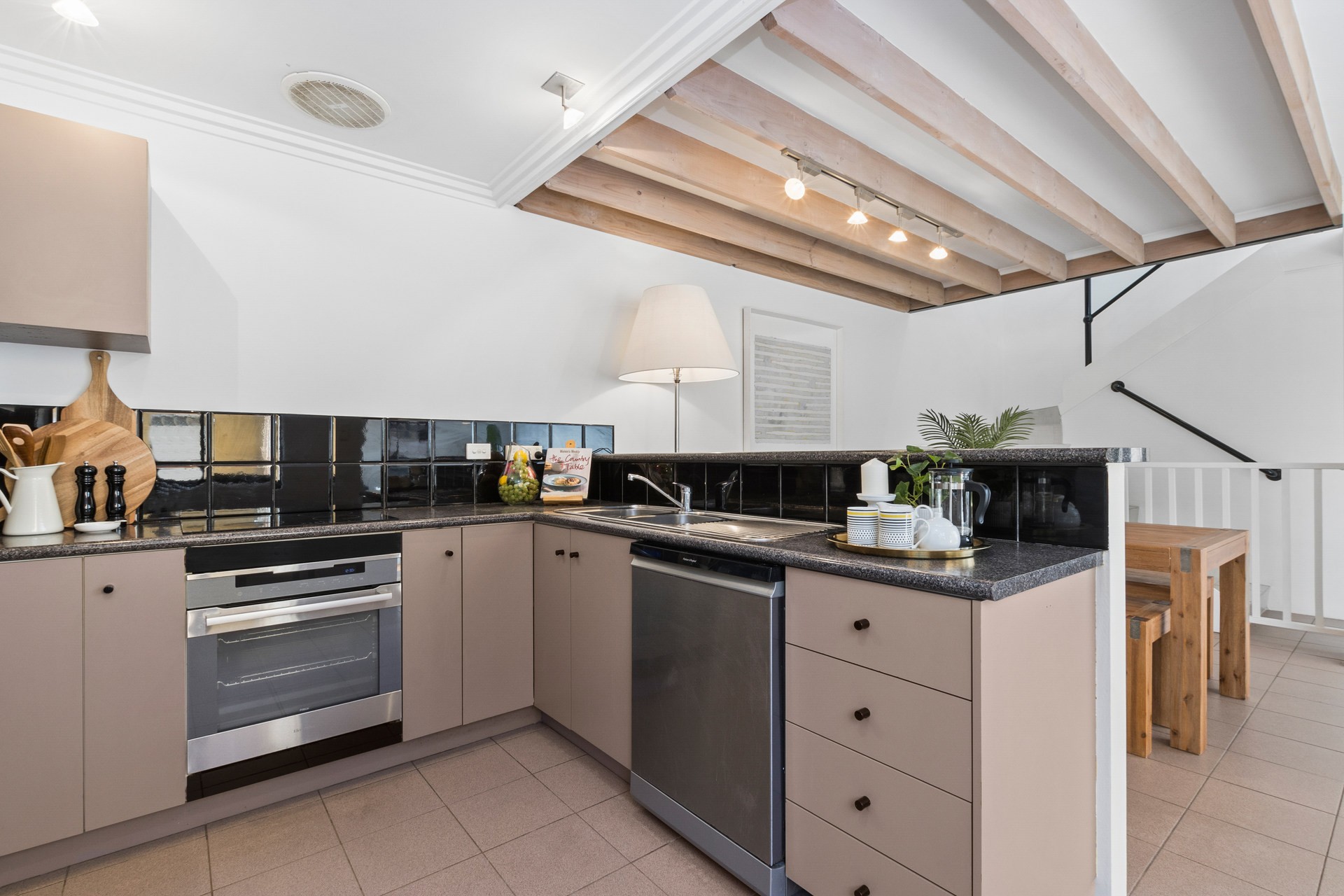 - Open plan kitchen, living and dining with built-in wine rack