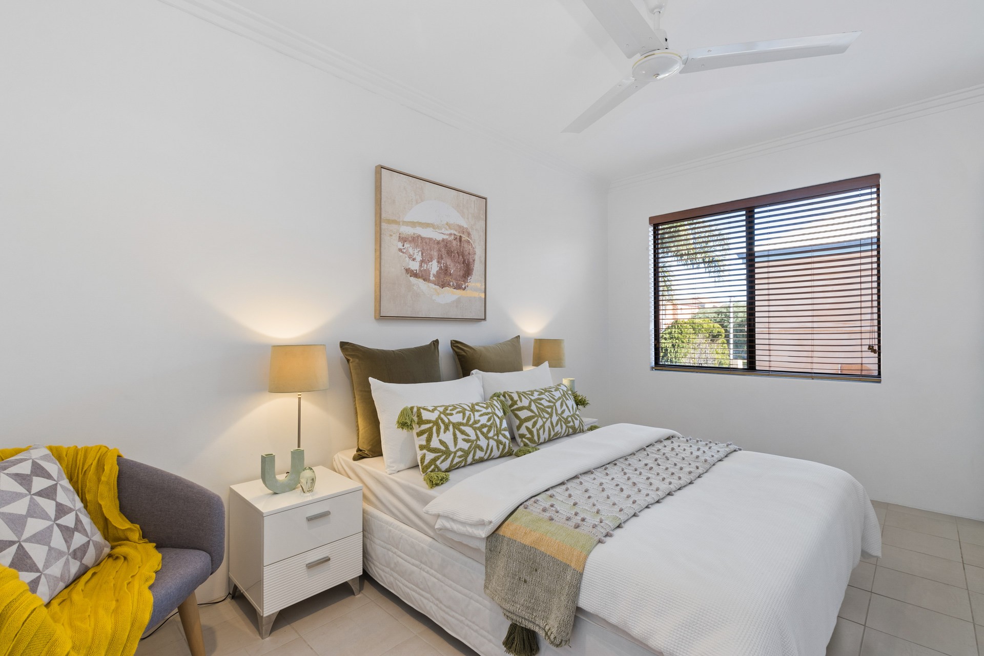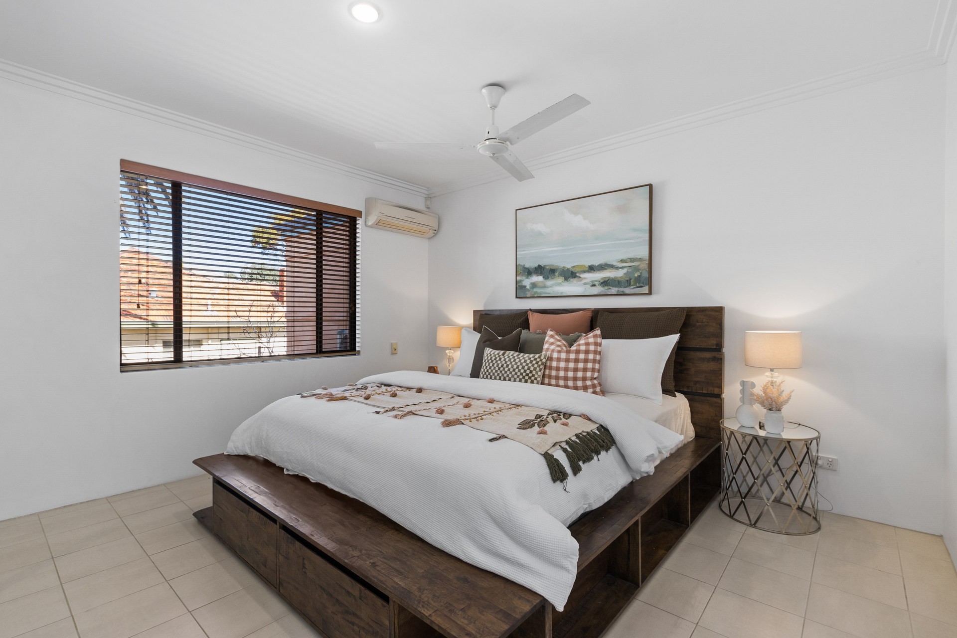 - Tiled throughout, timber floors to main living