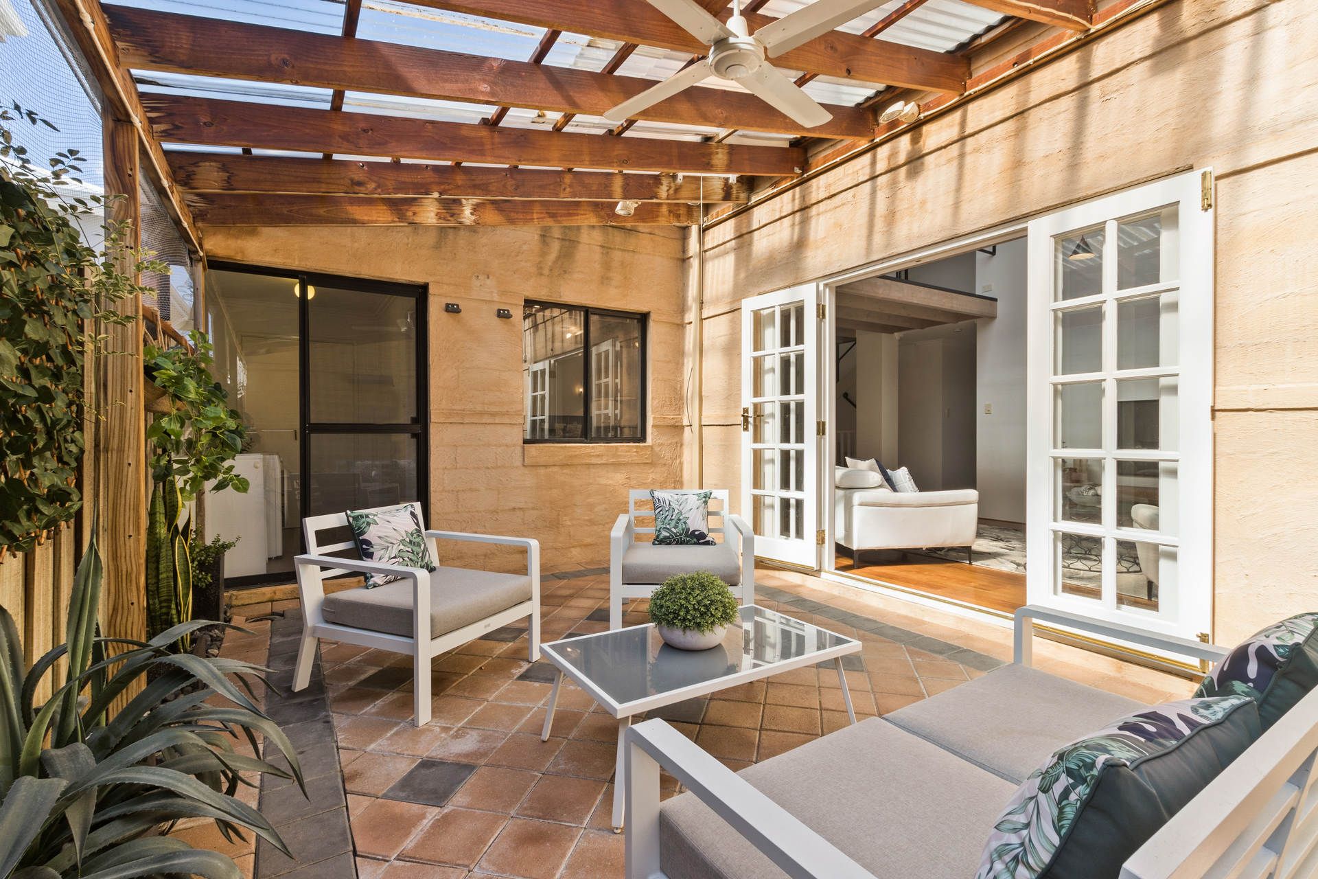 - Undercover, weatherproof courtyard with cool mister and ceiling fan, plus plenty of room for outdoor setting, day bed and BBQ