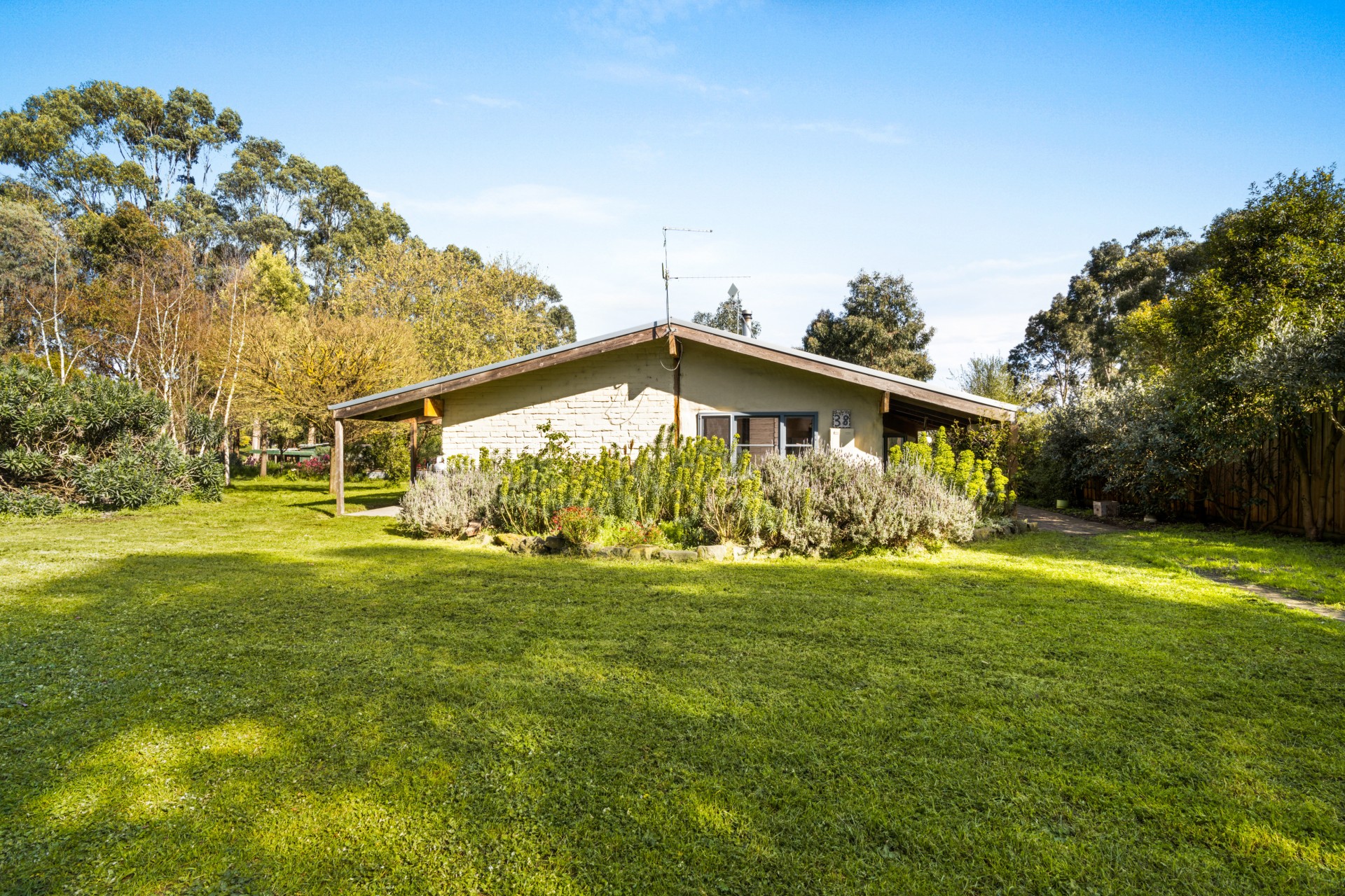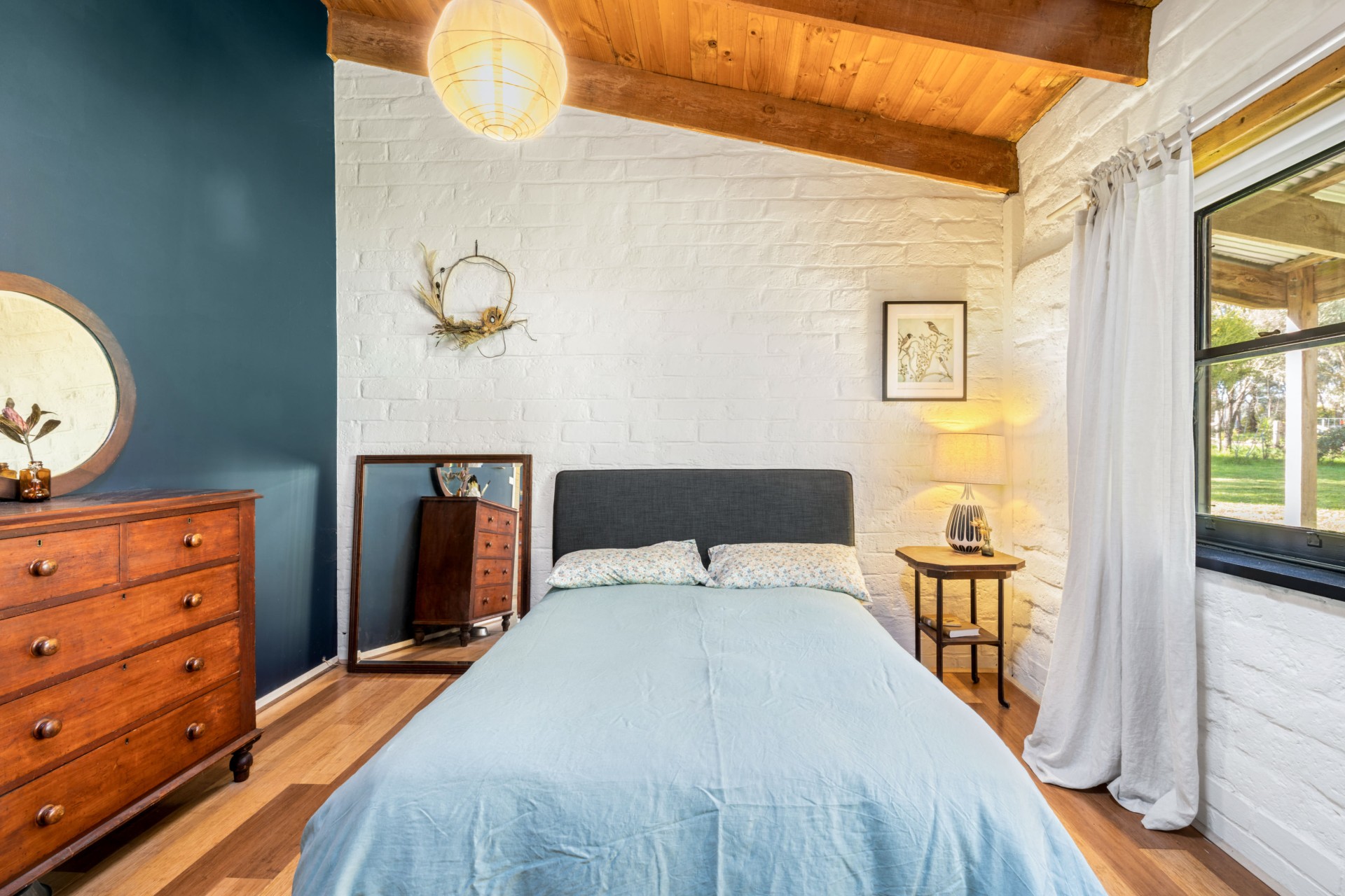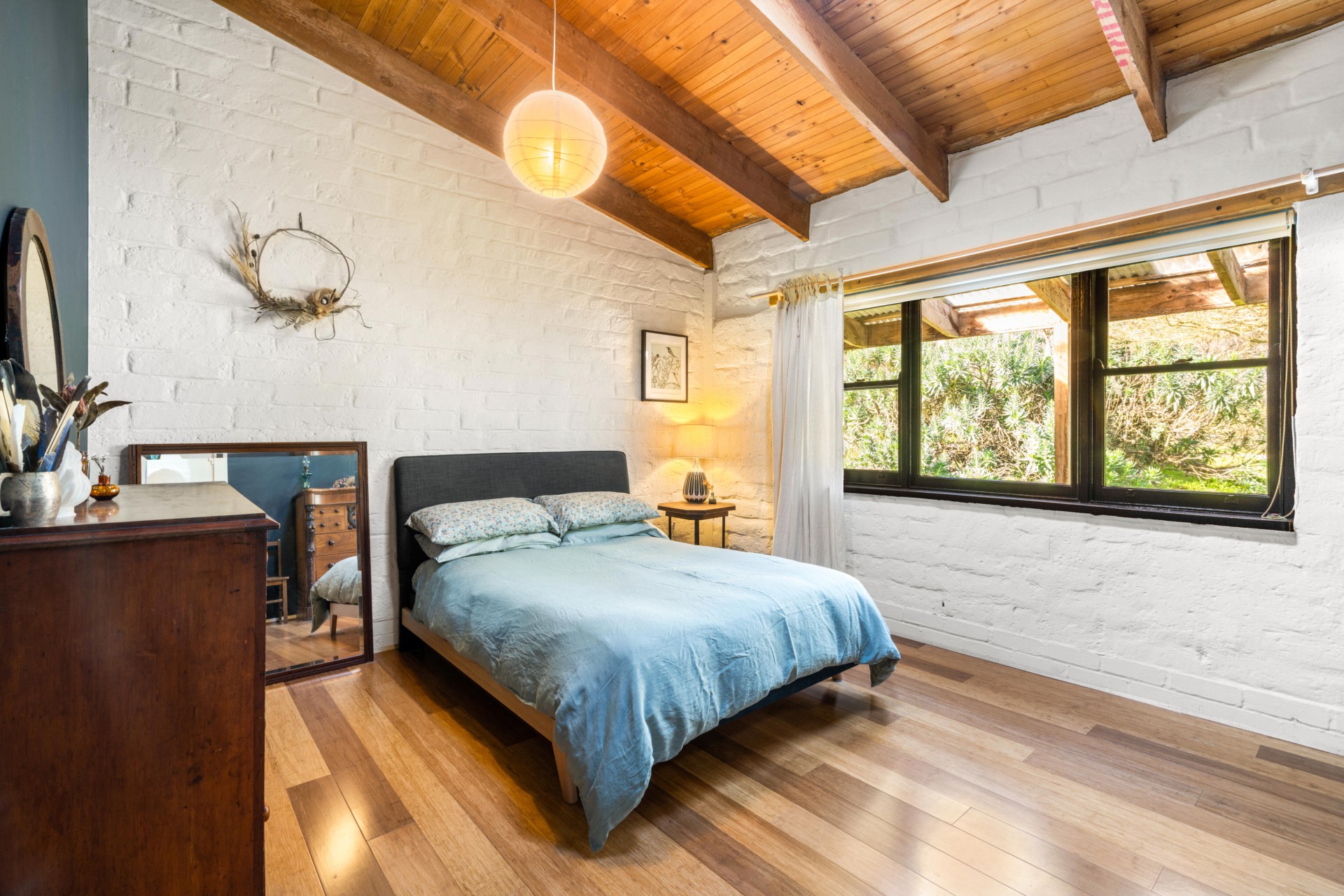 Rustic, post and beam construction, with vaulted ceilings and modern conveniences. Located at the end of Aurel Road, the property is private with outlooks over farmland, and sunset over the Otways.