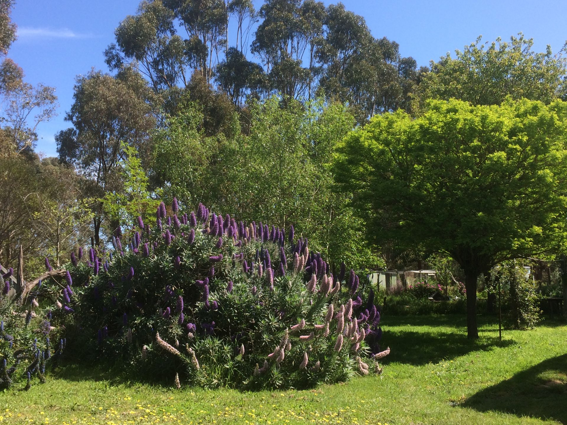 -Established gardens with large trees, flowering natives, cottage varieties, and reliable rainfall.