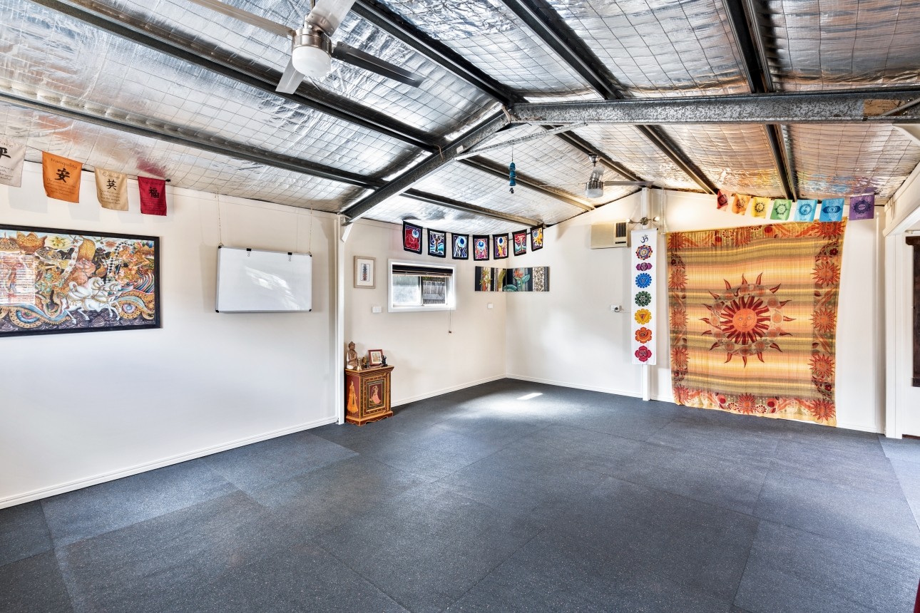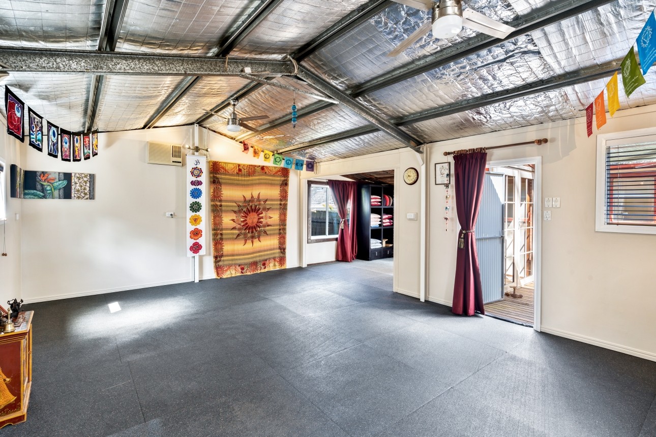 Currently purposed as a Yoga Studio, this 46m2 space sits behind the house and welcomes visitors via it's own private and separate garden entrance. The house and studio are connected by a level, sun drenched, north-facing rear deck.