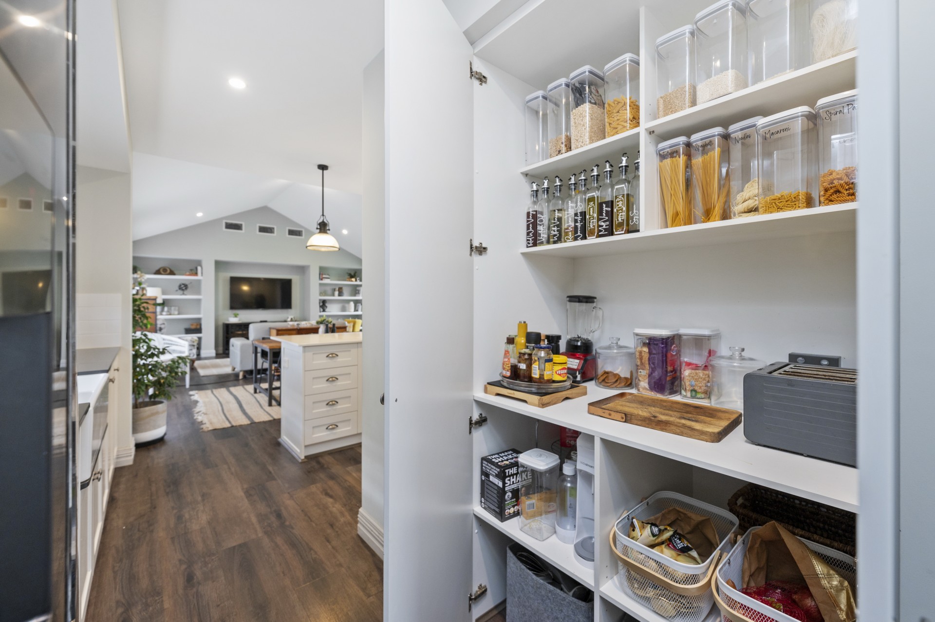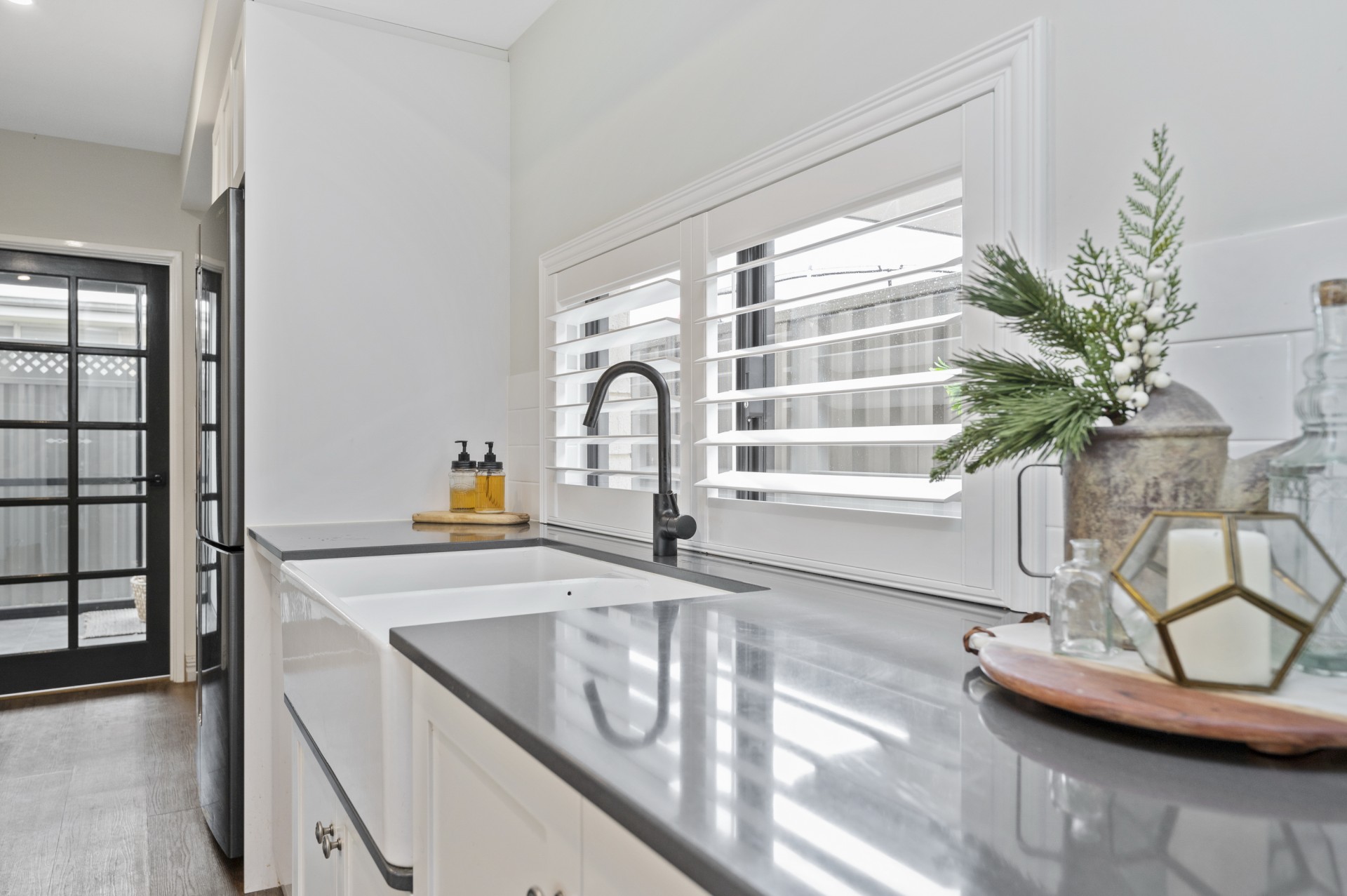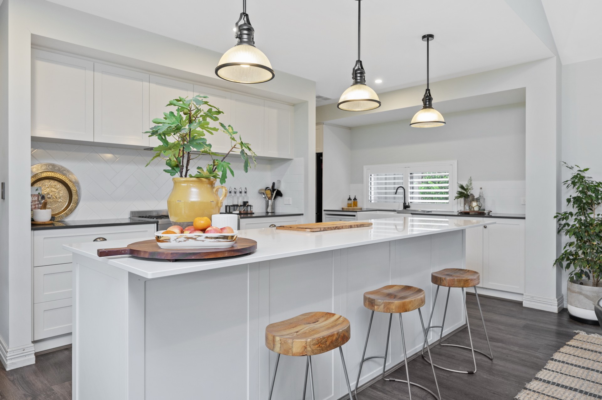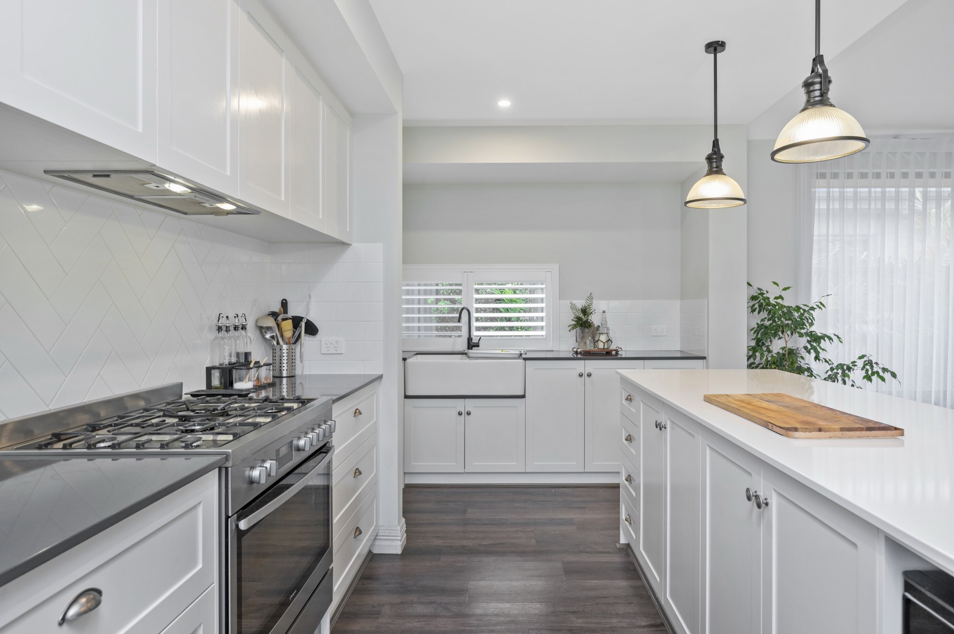 Overlooked by the stunning quality kitchen with a 3-metre stone bench tops, quality appliances and ample white soft close draws and cupboards. There is also a stunning Scullery that provides oodles of storage and a recess for a double Fridge, that is plumbed. A double farmhouse sink to die for finishes of this area to a tee.