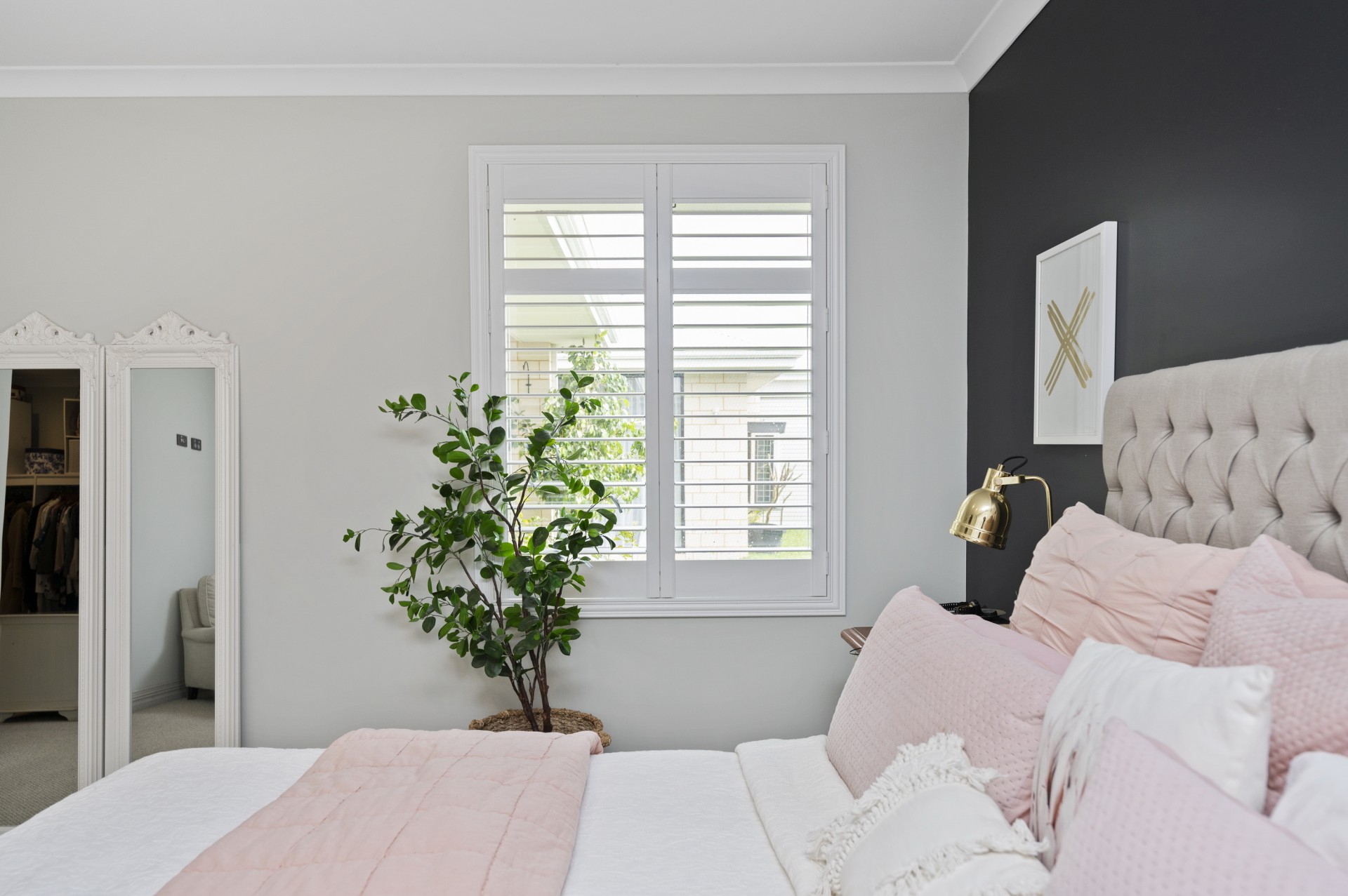 The 2nd bedroom is Large Queen size and has its own large walk in robe. There is a well appointed family bathroom which is located at the end of the side hall way along with the 3rd bedroom which has Mirrored Robes and Shuttered Windows. A central walk in Linen Closet gives you heaps of storage .