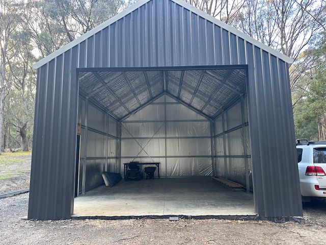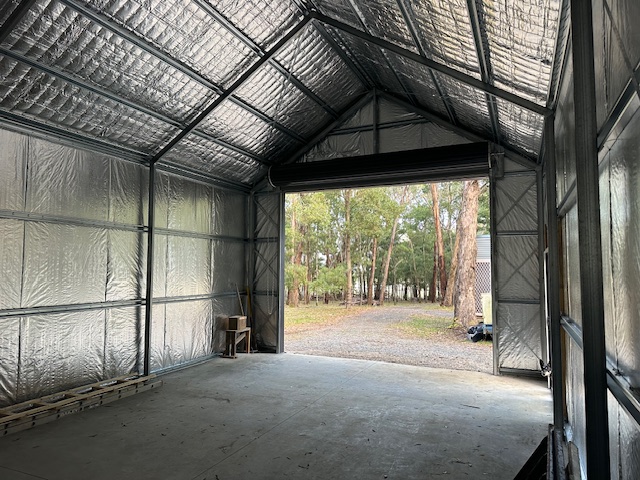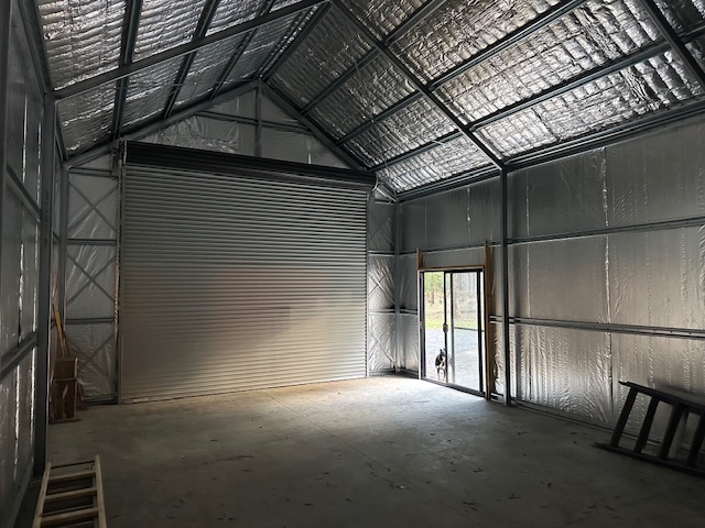With 9 m x 6 m shed with high roof and 4.2 wide x 3.7 high roller door. The shed has a permit.