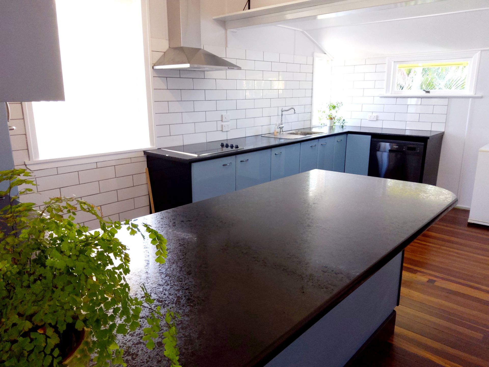 The generous kitchen has new bench tops with dishwasher and range-hood.