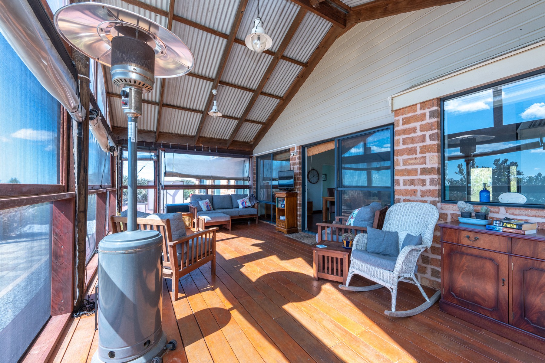- Enclosed fly screen/cafe blinds sitting area overlooking one of the gardens